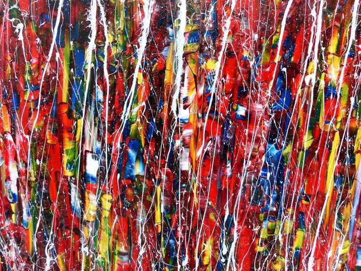 Hallo, ich bin Alex Zerr, der Künstler hinter diesem Gemälde. In meinem Atelier in Bad Lippspringe erschaffe ich abstrakte Acrylbilder, überwiegend im Action-Painting-Stil. Meißtens mit Acrylfarben und auf sehr großen XXL-Leinwänden, die meinem kreativen Prozess besonders viel Freiheit erlauben und oft zu beeindruckenden Gemälden führen.