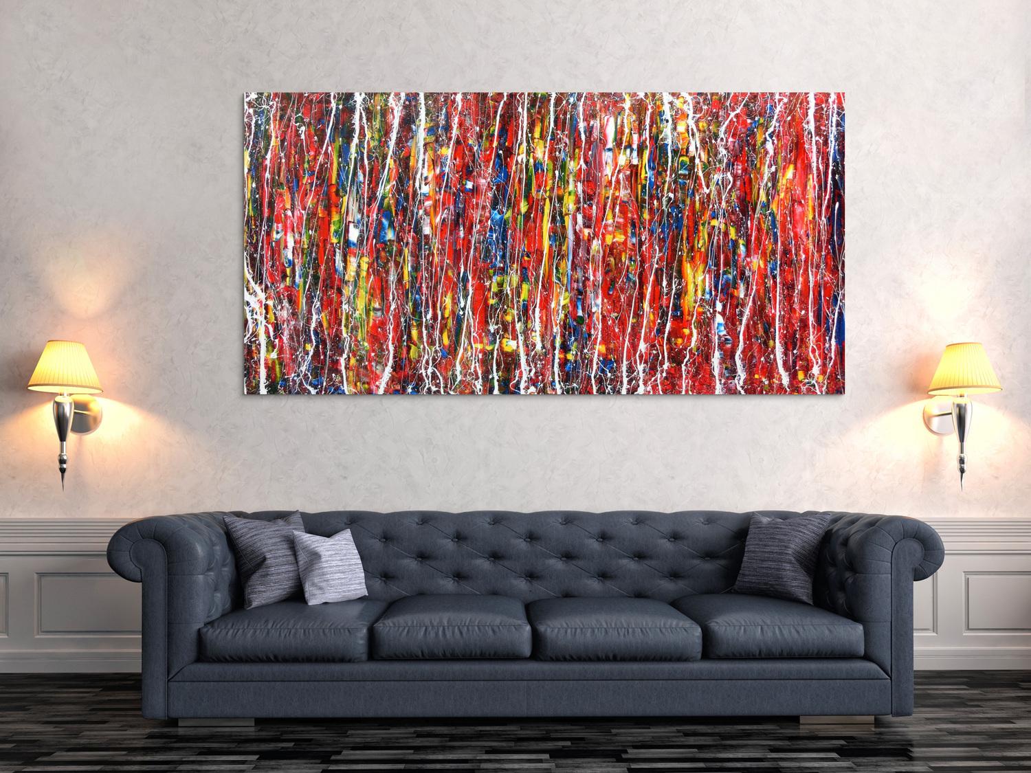Abstraktes Gemälde auf Leinwand Abstrakes modernes Acrylbild bunt und groß in 100x200cm von Alex Zerr
