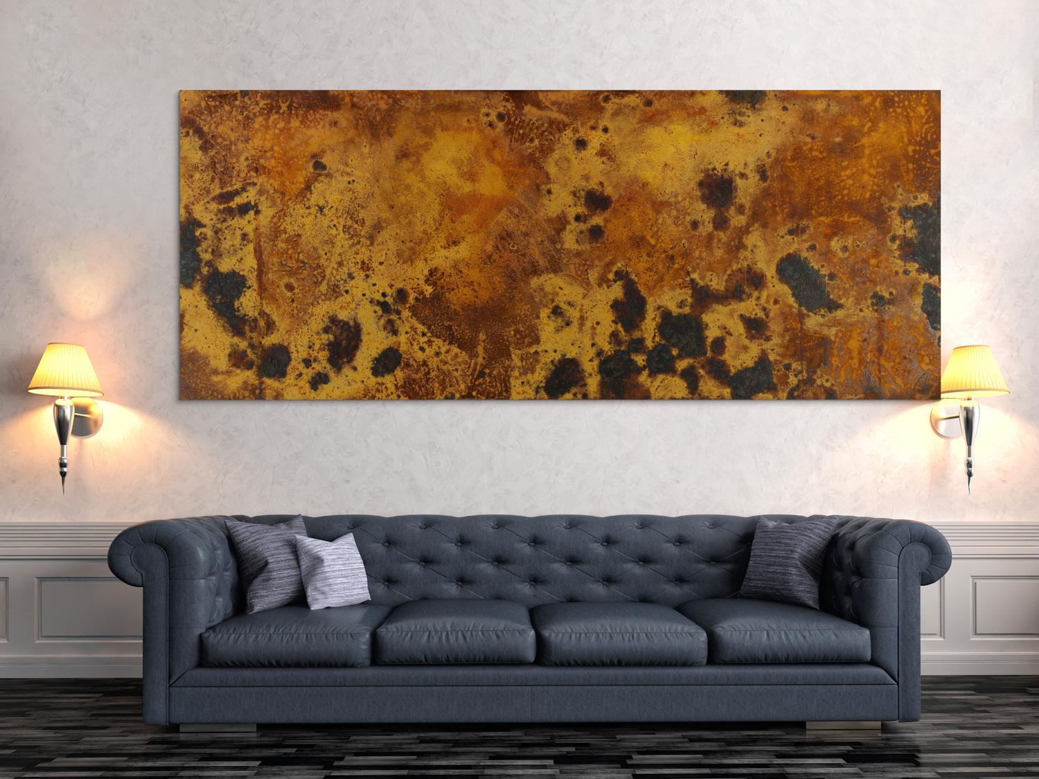 Abstraktes Gemälde auf Leinwand Abstrakte Bild aus echtem Rost auf Leinwand handgemalt zeitgenösssich panorama XXL in 100x250cm von Alex Zerr