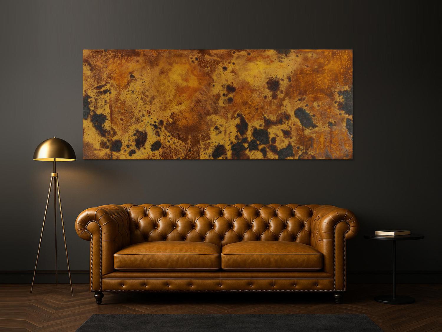 Abstrakte Bild aus echtem Rost auf Leinwand handgemalt zeitgenösssich panorama XXL