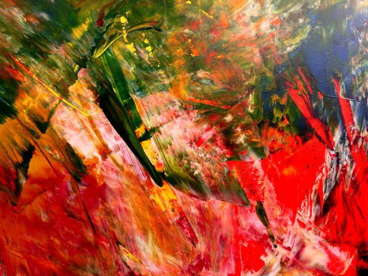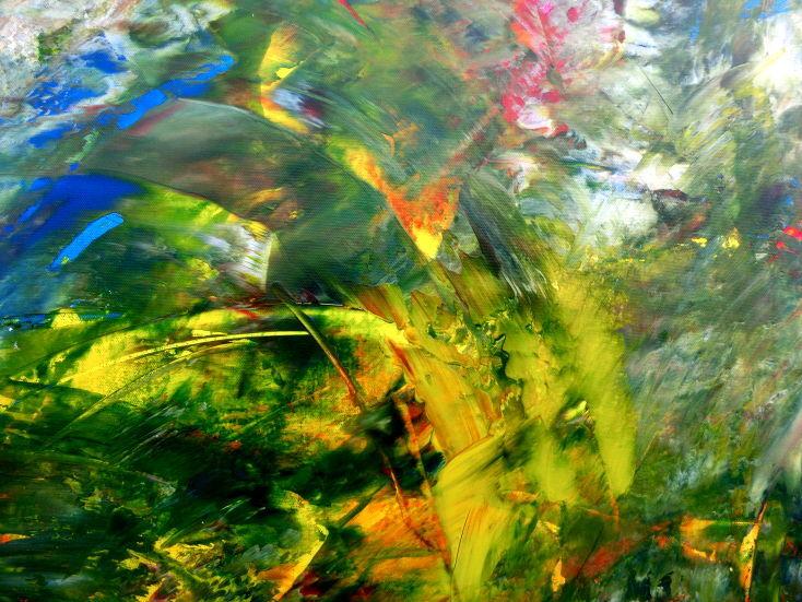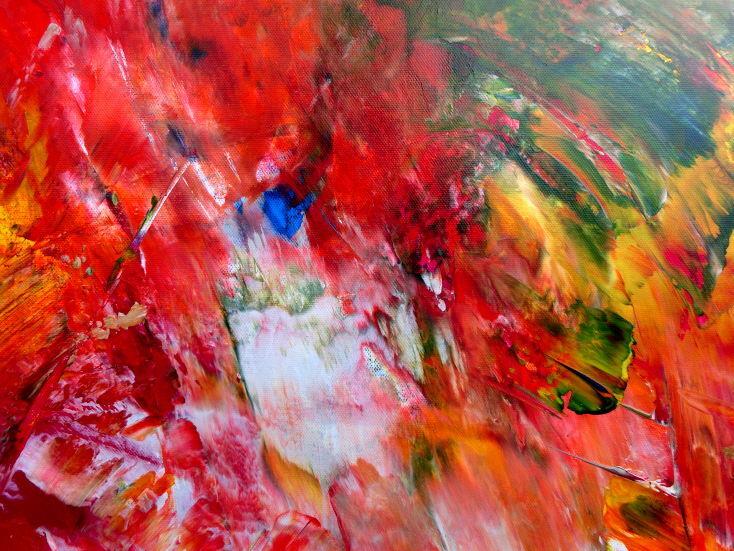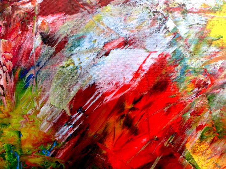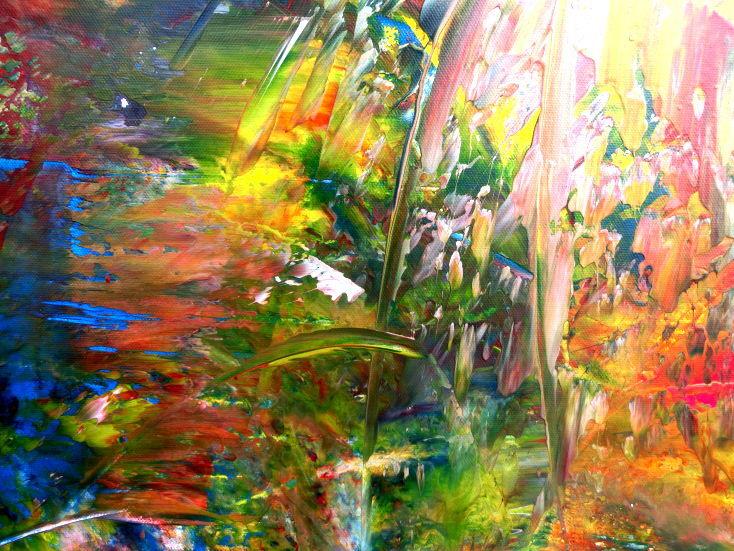 Dieses Werk ist wie alle meine Bilder: spontan entstanden, ganz intuitiv und ohne festes Konzept, und spiegelt oft meine momentane Stimmung wider wie auf der Leinwand festgehalten wurde.