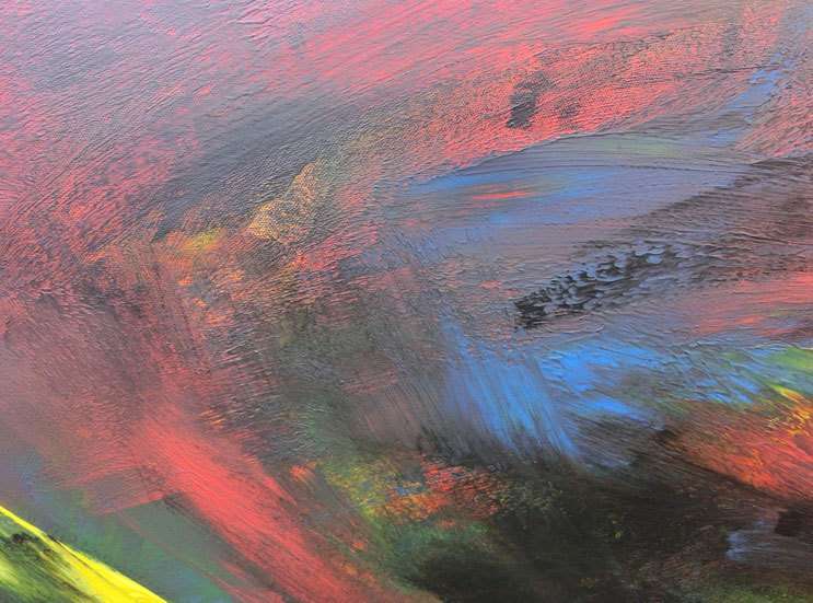 Dieses Werk ist wie alle meine Bilder: spontan entstanden, ganz intuitiv und ohne festes Konzept, und spiegelt oft meine momentane Stimmung wider wie auf der Leinwand festgehalten wurde.