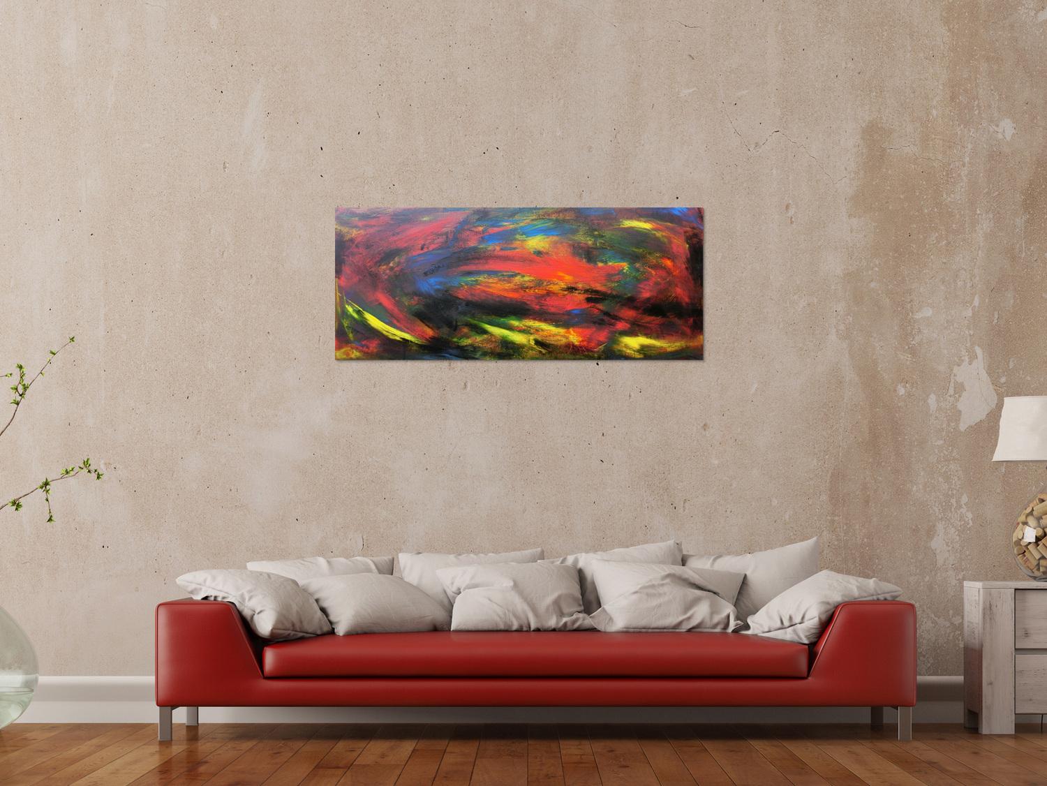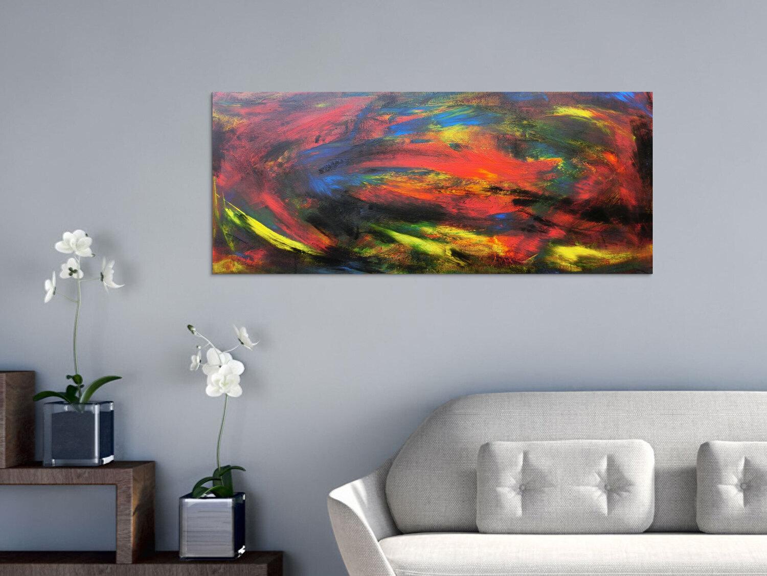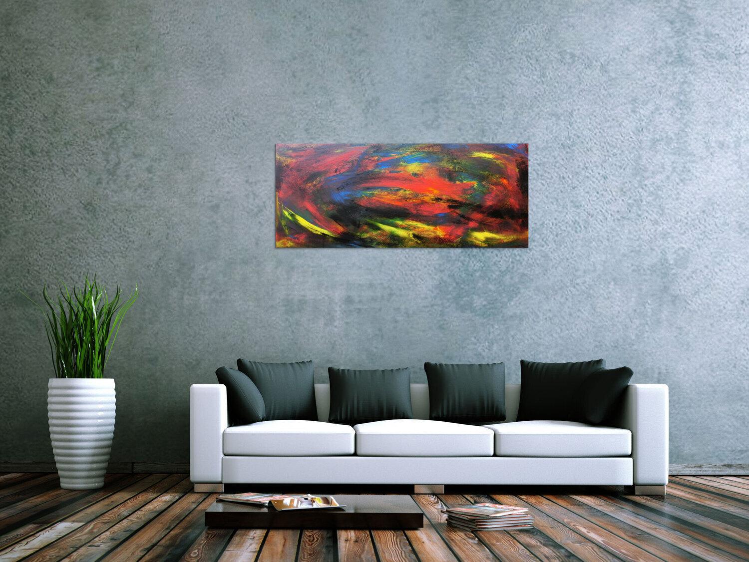 Abstraktes Gemälde auf Leinwand Abstraktes Acrybild bunt modern in 49x120cm von Alex Zerr