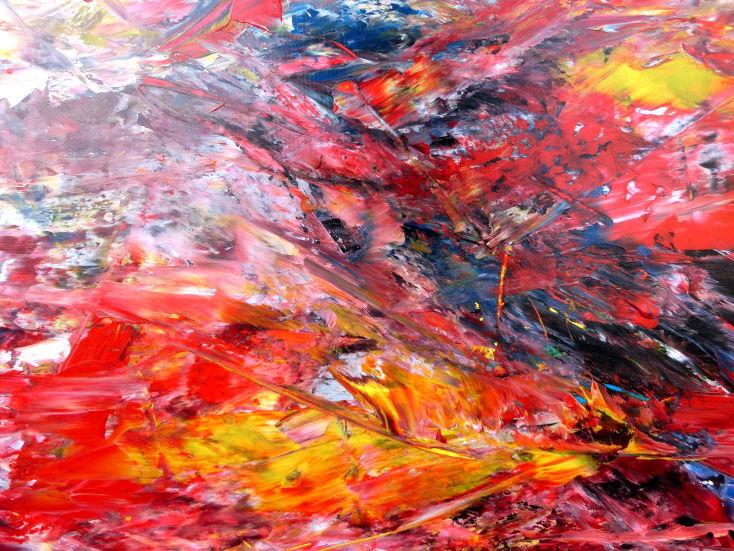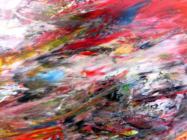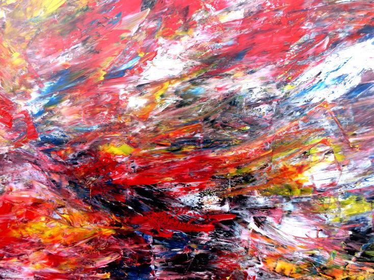 Dieses Werk ist wie alle meine Bilder: spontan entstanden, ganz intuitiv und ohne festes Konzept, und spiegelt oft meine momentane Stimmung wider wie auf der Leinwand festgehalten wurde.