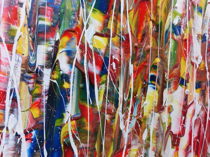 Dieses abstrakte Acrylbild ist ein handgemaltes Original vom Künstler Alex Zerr aus Bad Lisppringe und ist im Jahr 2014 in seinem Atelier entstanden. Das Bild hat eine Größe von 100x200cm und ist bereits auf einem hochwertigen und stabilem Rahmen aufgespannt. Dadurch kann das Bild nach der Lieferung direkt an die Wand gehängt werden und sofort in Ihrem Raum wirken. Alle Seiten des Gemäldes sind passend zum Motiv bemalt, so dass kein zusätzlicher Rahmen benötigt wird.