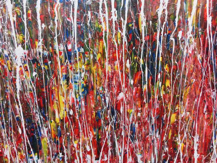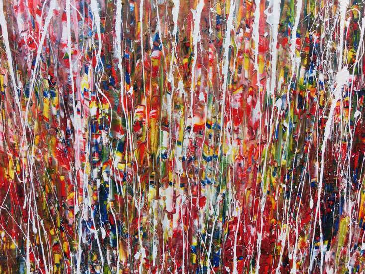 Hallo, ich bin Alex Zerr, der Künstler hinter diesem Gemälde. In meinem Atelier in Bad Lippspringe erschaffe ich abstrakte Acrylbilder, überwiegend im Action-Painting-Stil. Meißtens mit Acrylfarben und auf sehr großen XXL-Leinwänden, die meinem kreativen Prozess besonders viel Freiheit erlauben und oft zu beeindruckenden Gemälden führen.