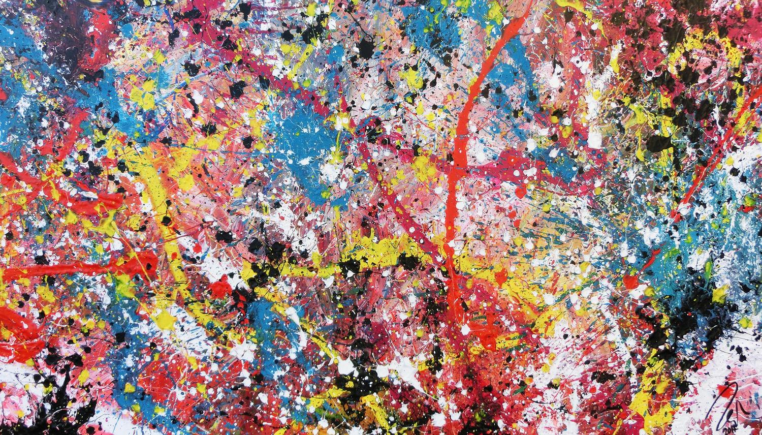 Abstraktes Acrylbild Acrtionpainting modern bunt viele Farben