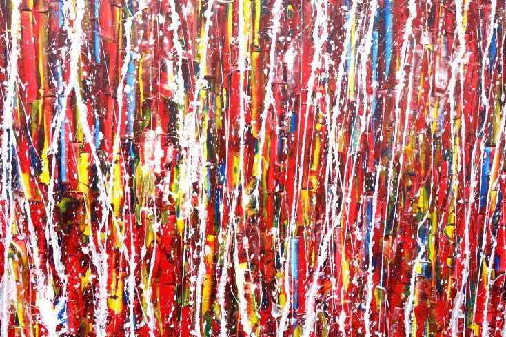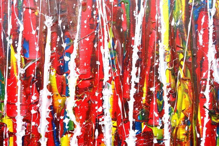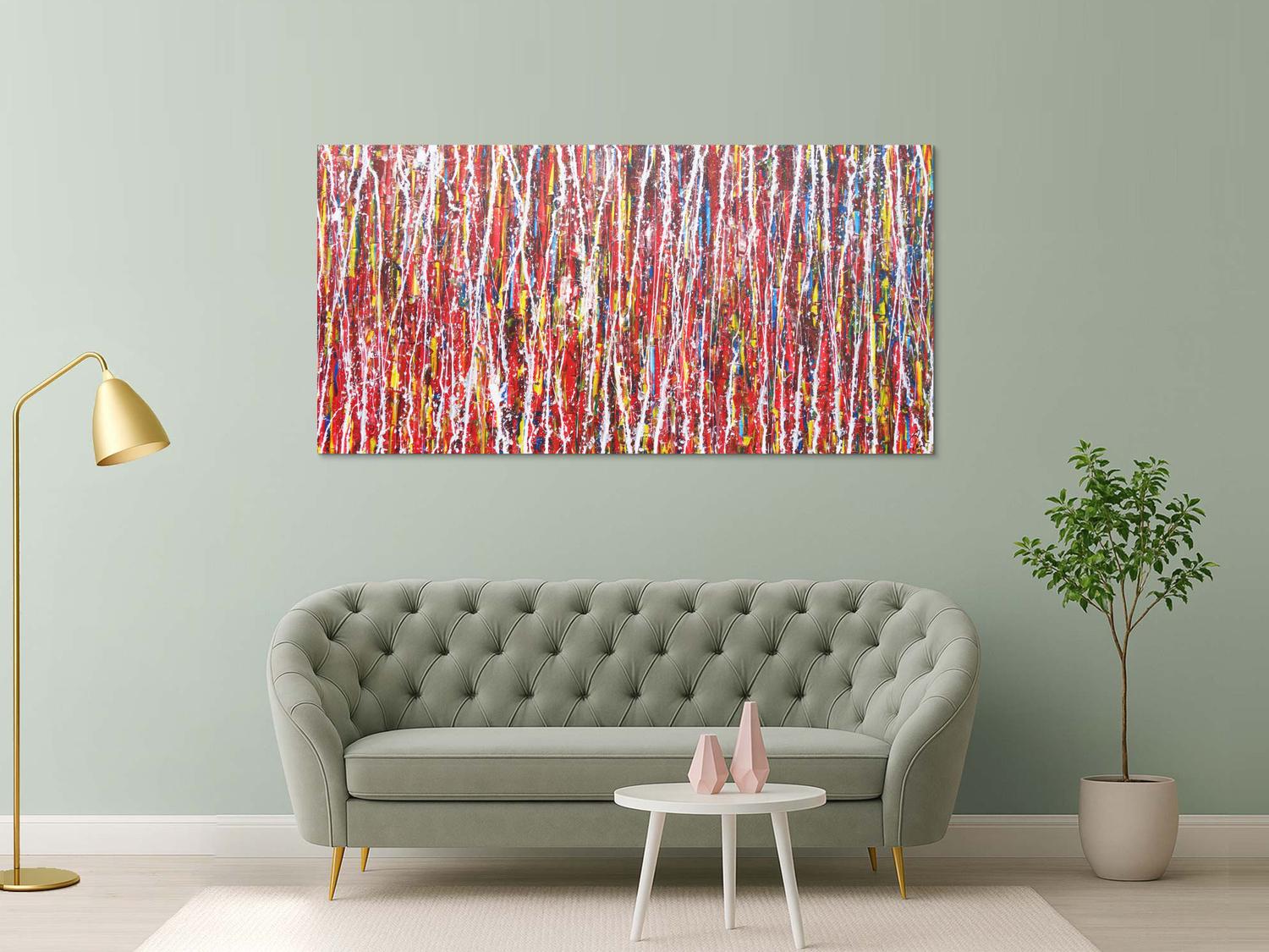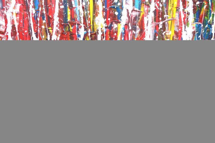 Abstraktes Acrylbild Action Painting bunt modern rot weiße Streifen zeitgenössisch