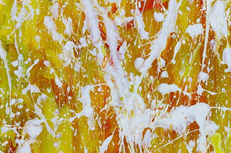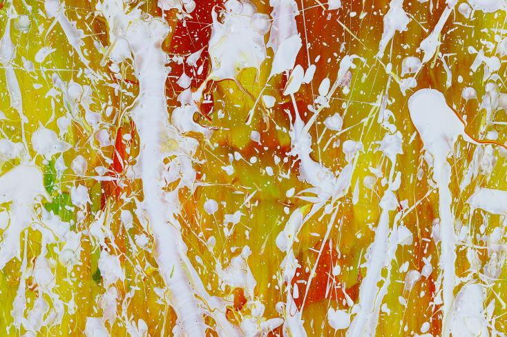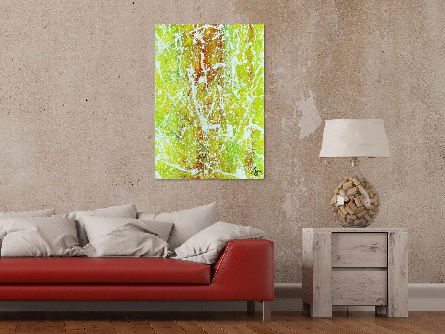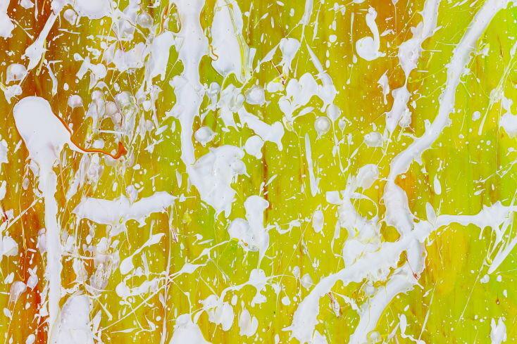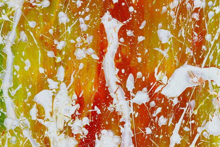 Abstraktes Acrylbild Action Painting geld orange grün weiß modern zeitgenössisch