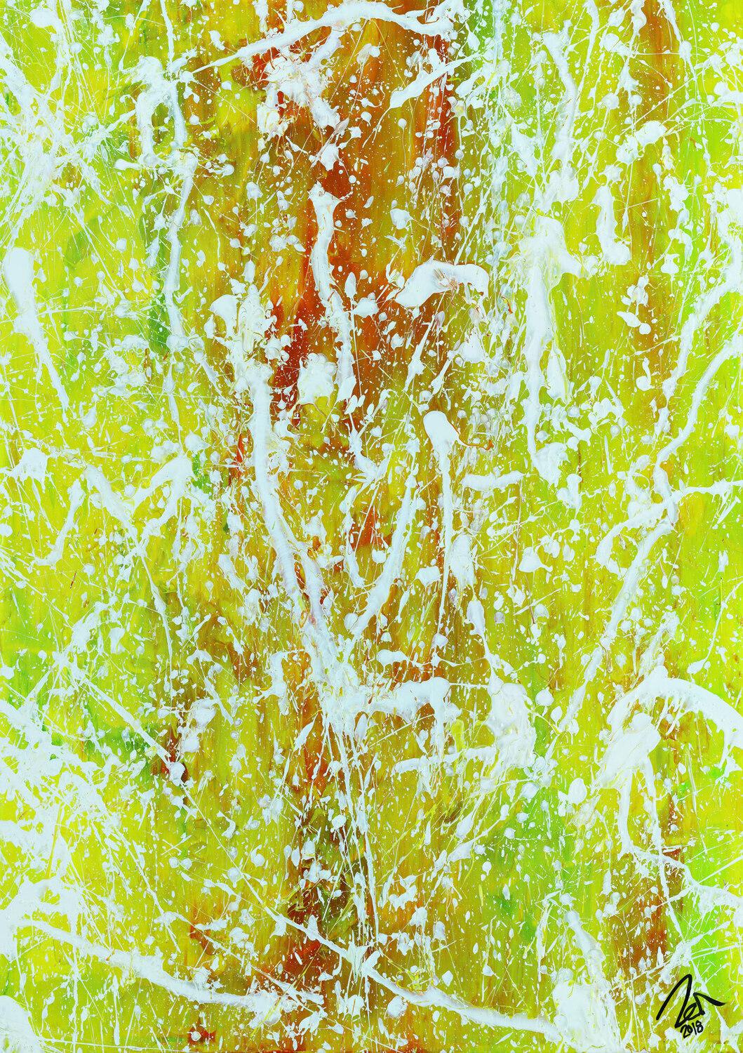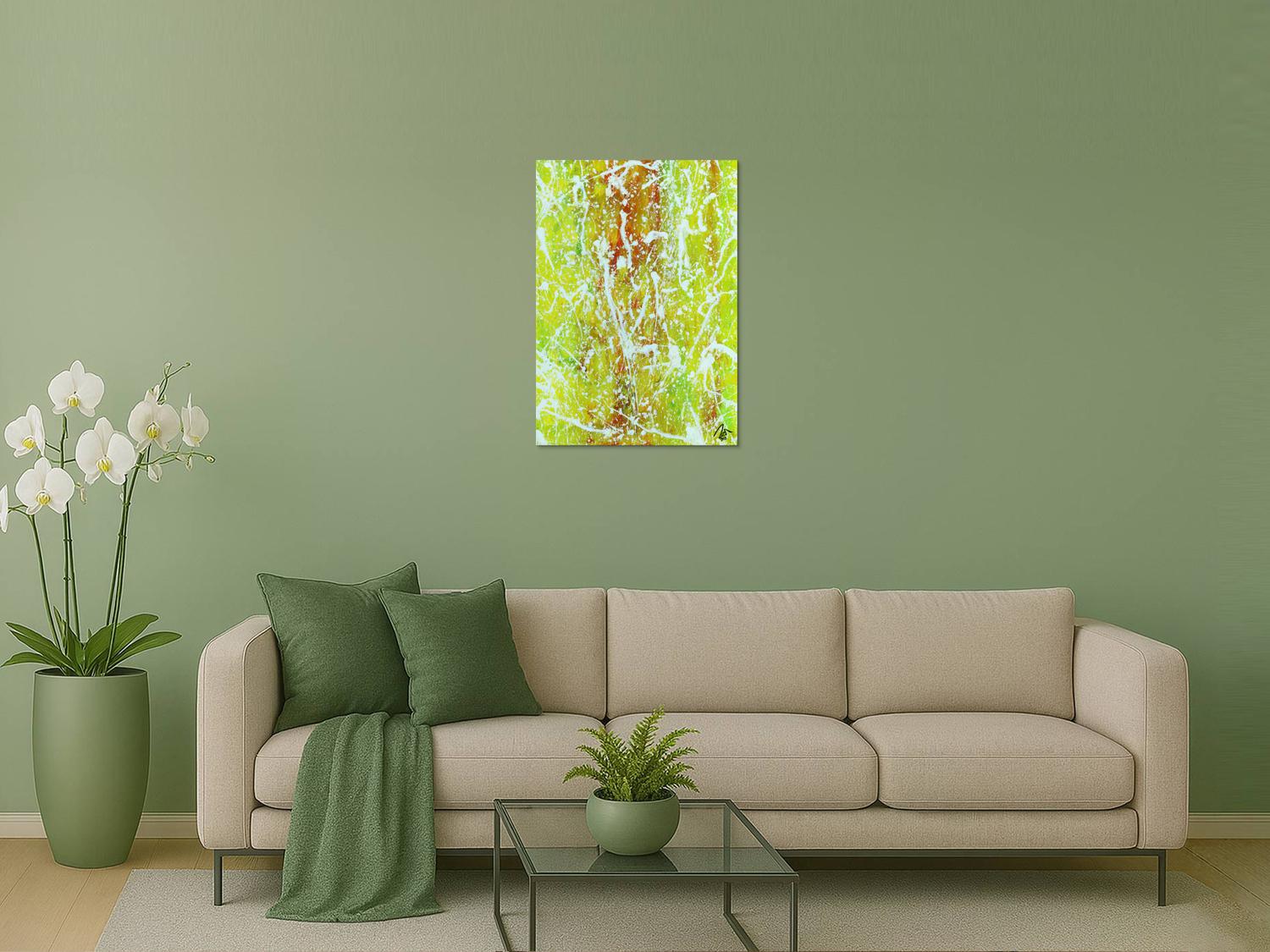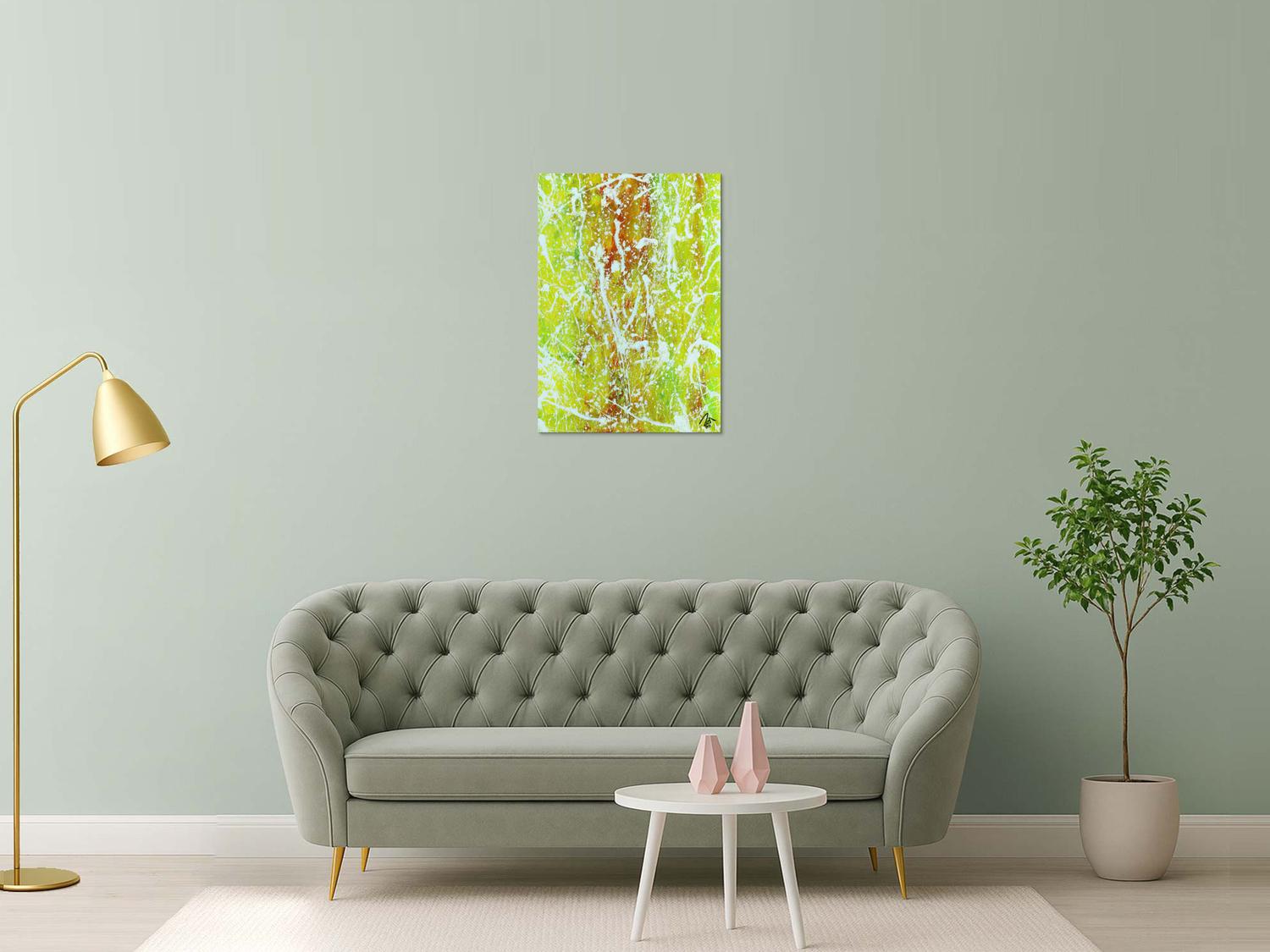 Abstraktes Acrylbild Action Painting geld orange grün weiß modern zeitgenössisch