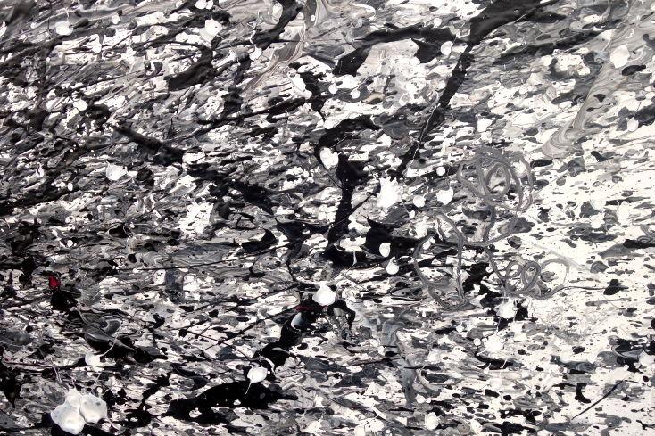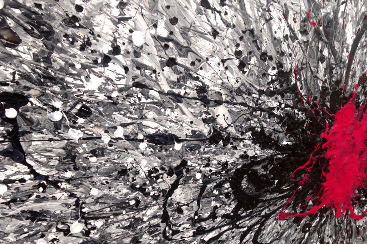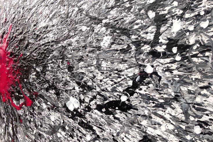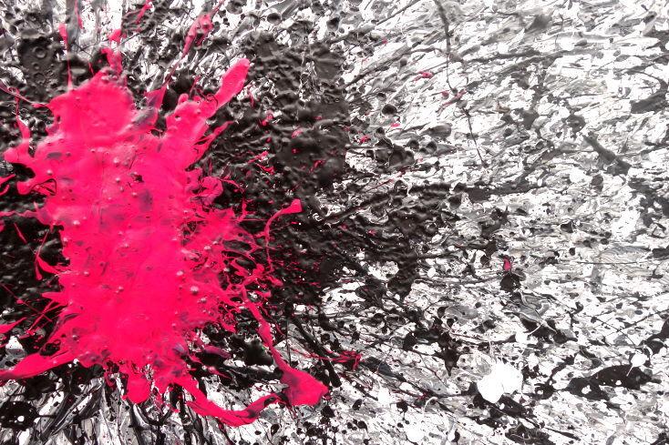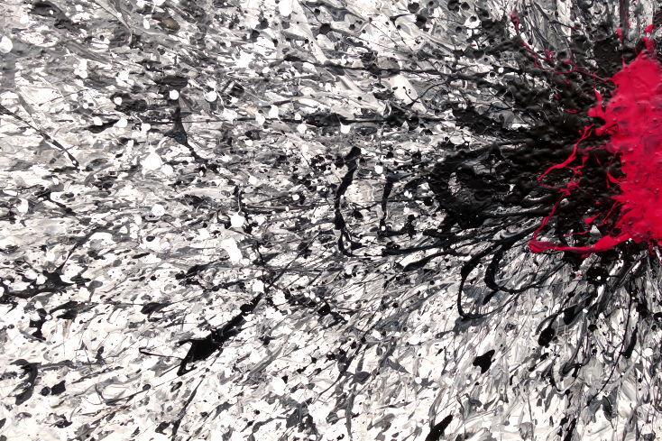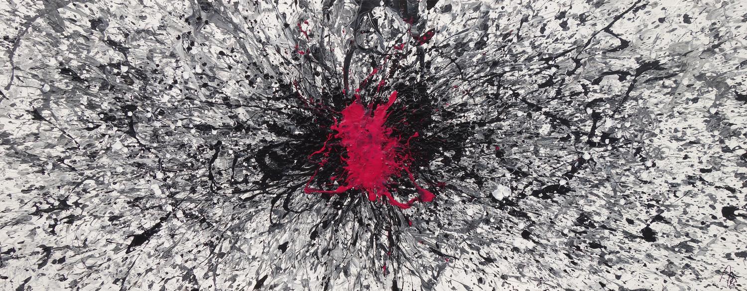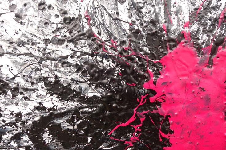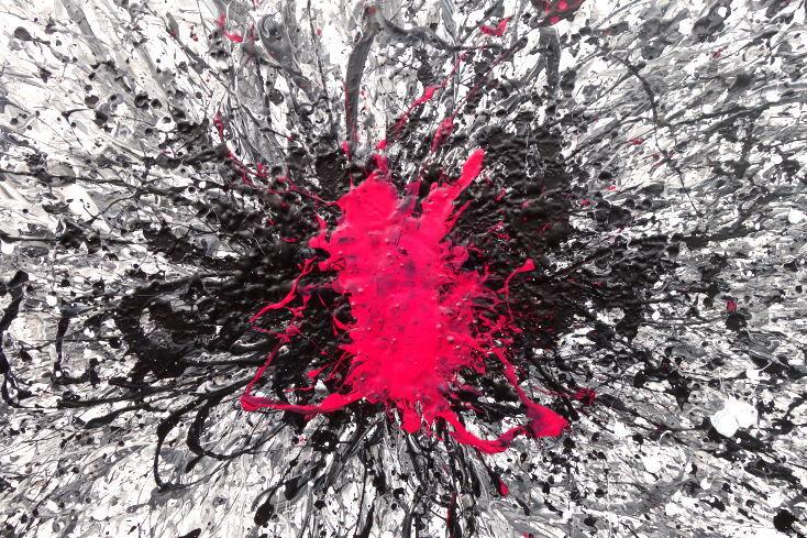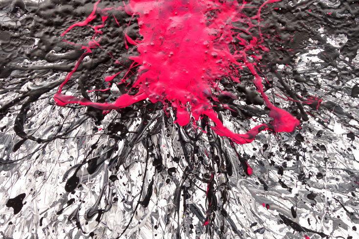 Abstraktes Acrylbild Action Painting glau weiß schwarz Fleck in Magenta Splash Art Zeitgenössisch
