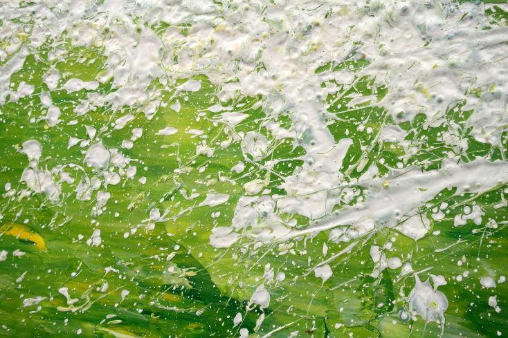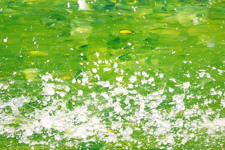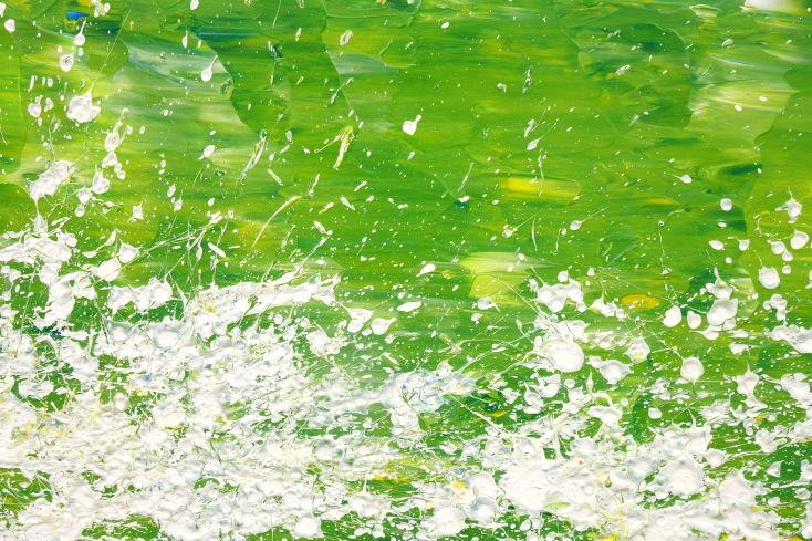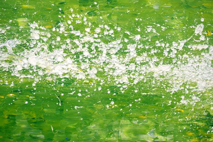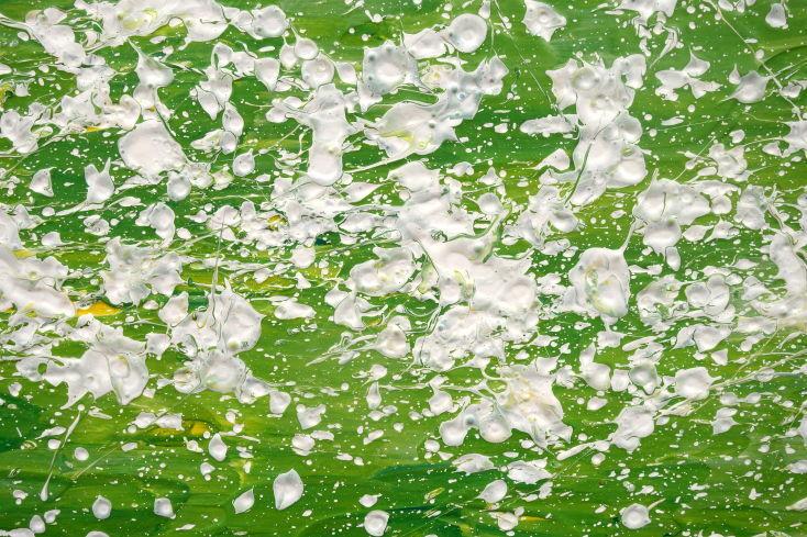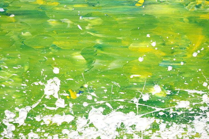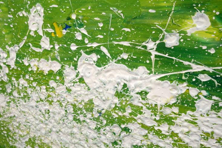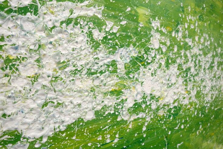 Abstraktes Acrylbild Action Painting grün weiß zeitgenössisch modern expressionistisch