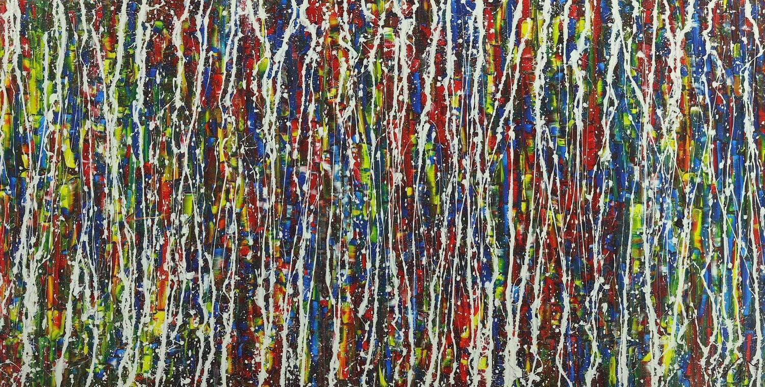 Abstraktes Gemälde auf Leinwand Abstraktes Acrylbild Action Painting handgemalt auf Leinwand sehr bunt in 100x200cm von Alex Zerr