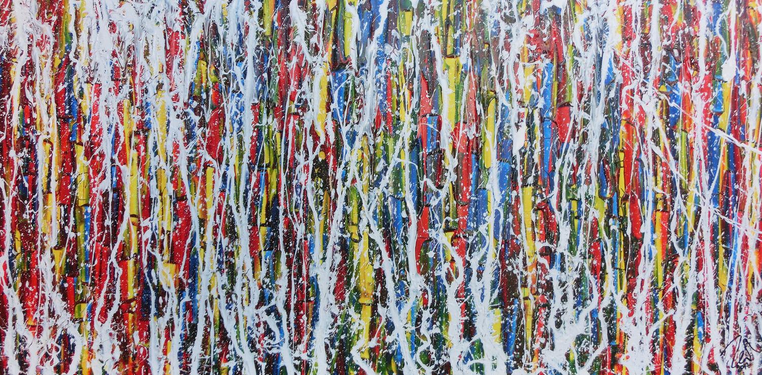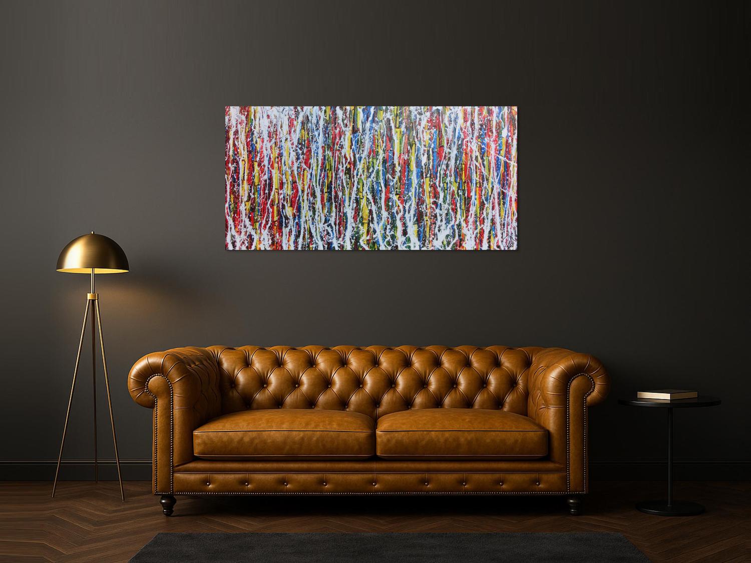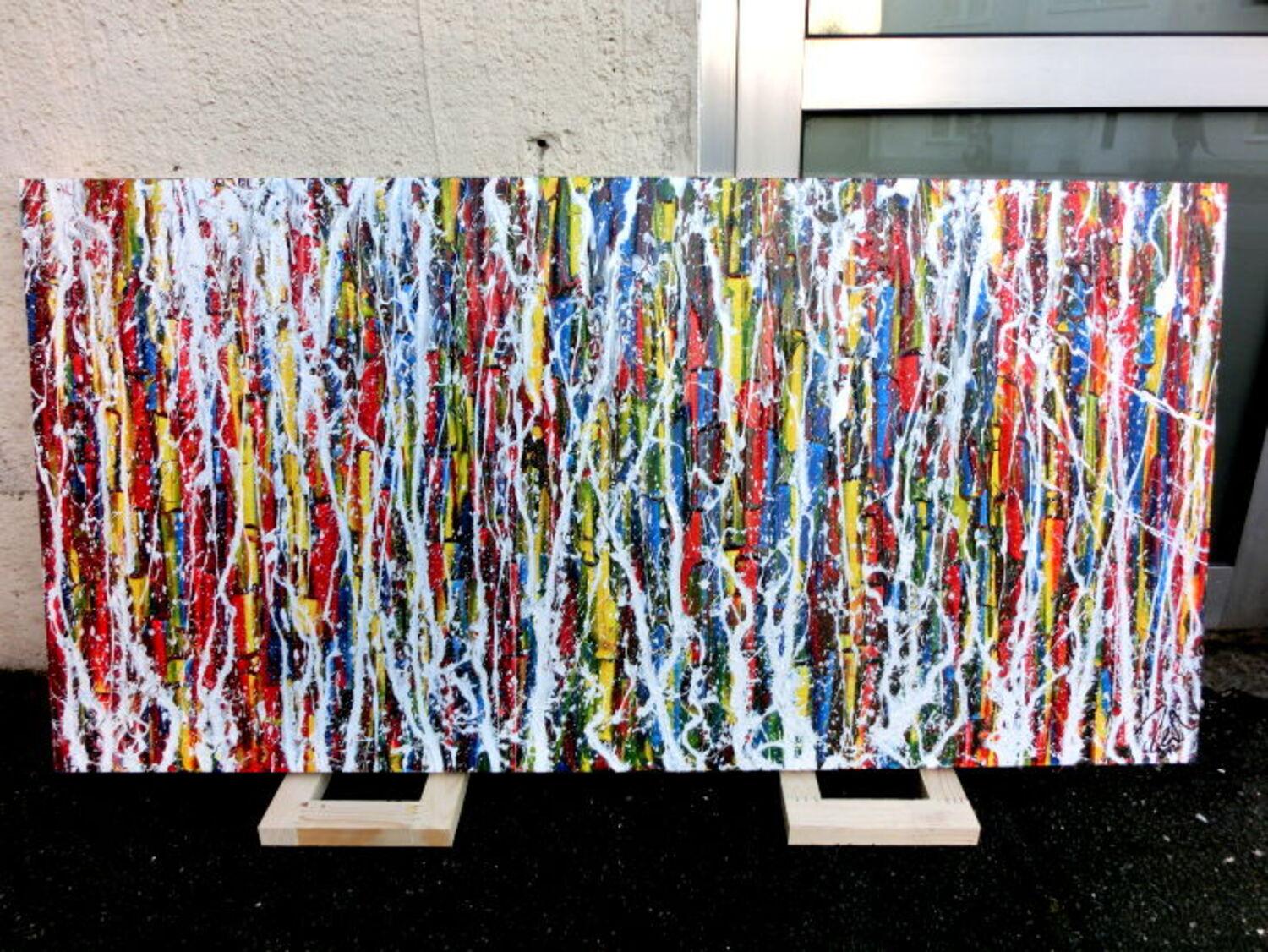 Abstraktes Gemälde auf Leinwand Abstraktes Acrylbild Action Painting Mischtechnik Spachteltechnik sehr modern bunt in 80x160cm von Alex Zerr