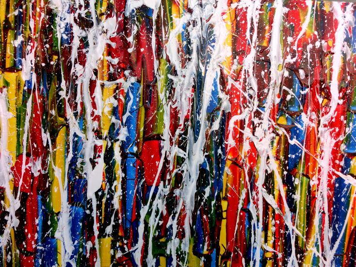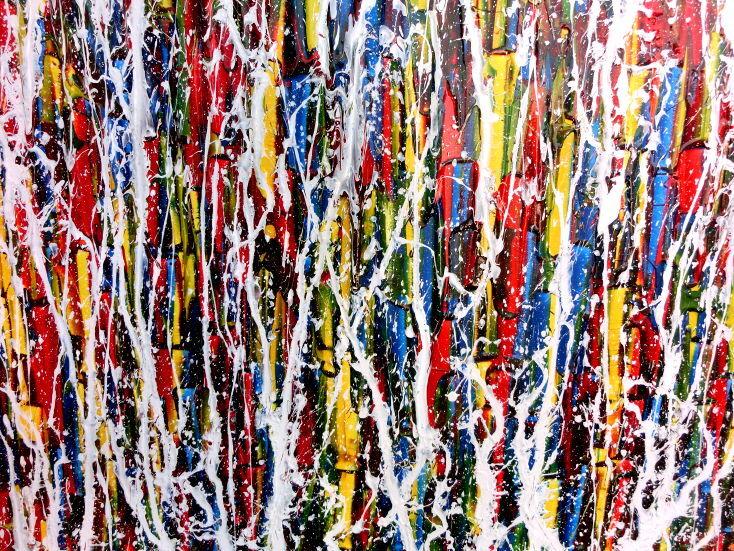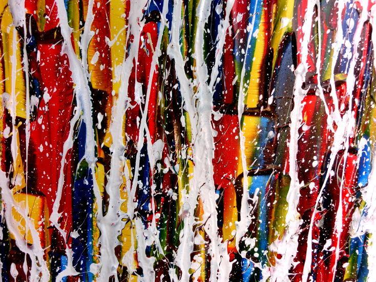 Abstraktes Acrylbild Action Painting Mischtechnik Spachteltechnik sehr modern bunt