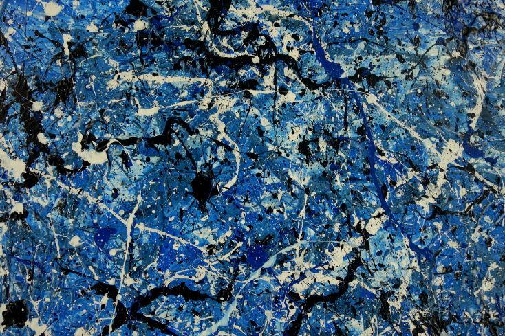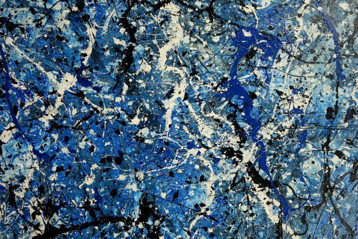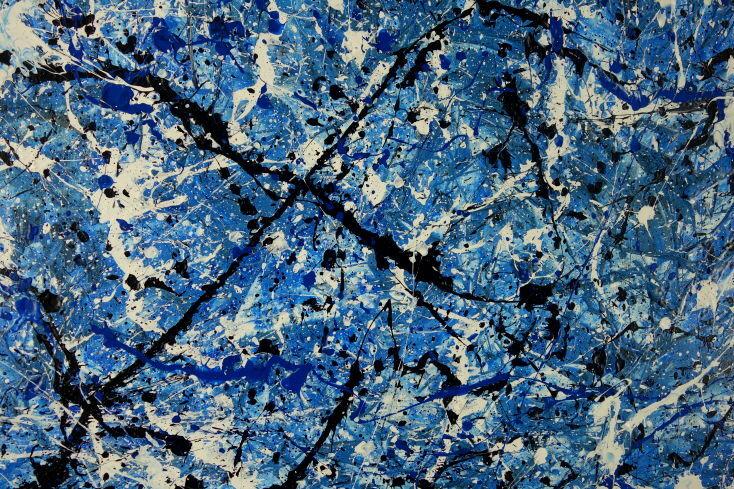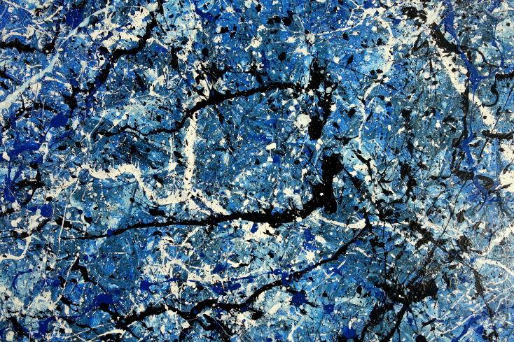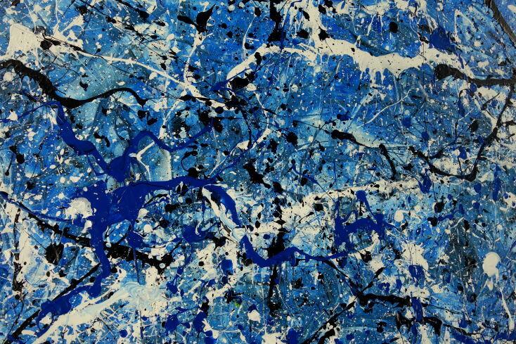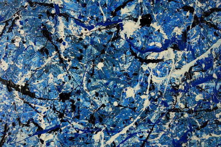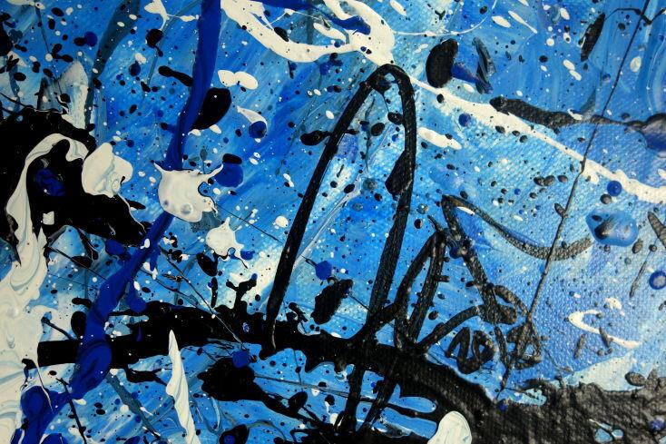 Abstraktes Acrylbild Action Painting Modern Art blau weiß schwarz abstrakt expressionistisch