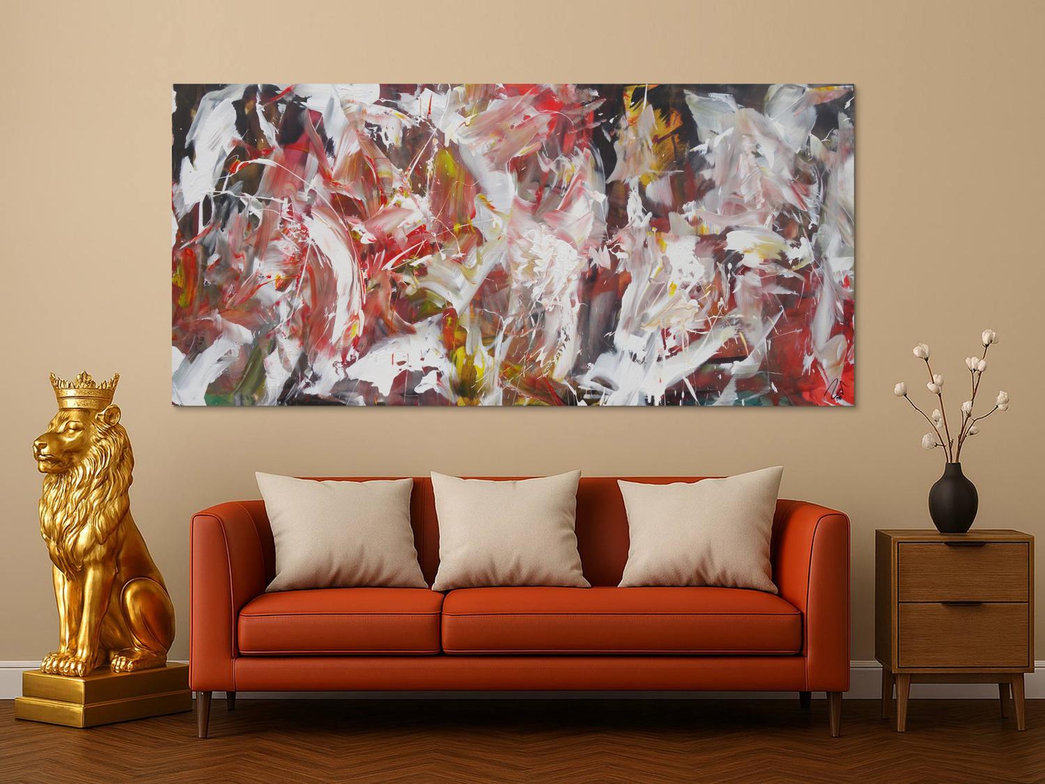 Abstraktes Gemälde auf Leinwand Abstraktes Acrylbild Action Painting Modern Art expressionistisch zeitgenössisch in 100x220cm von Alex Zerr