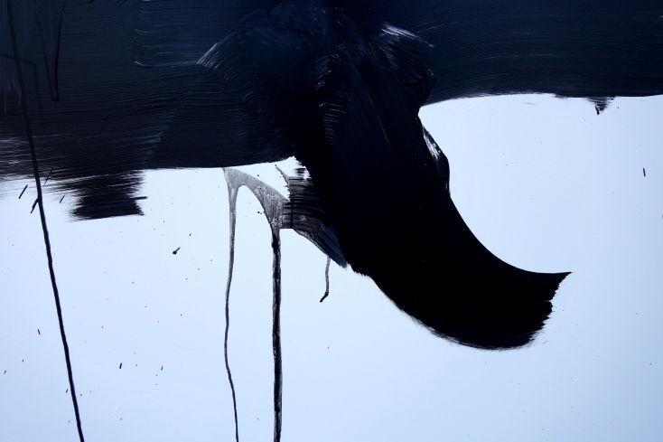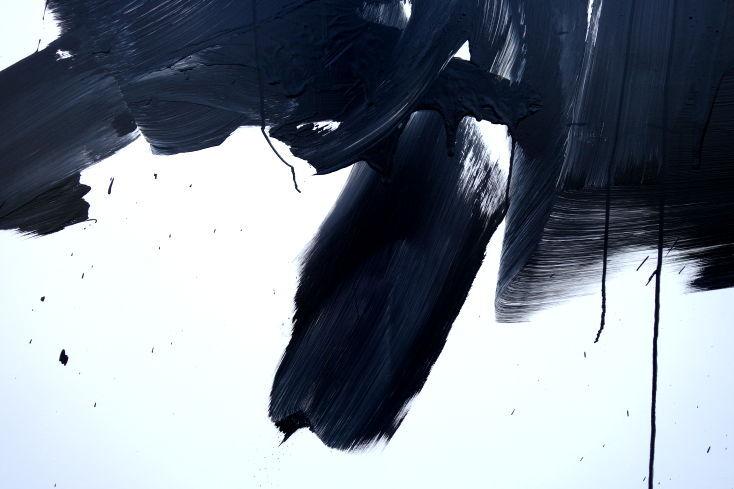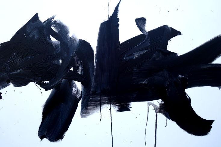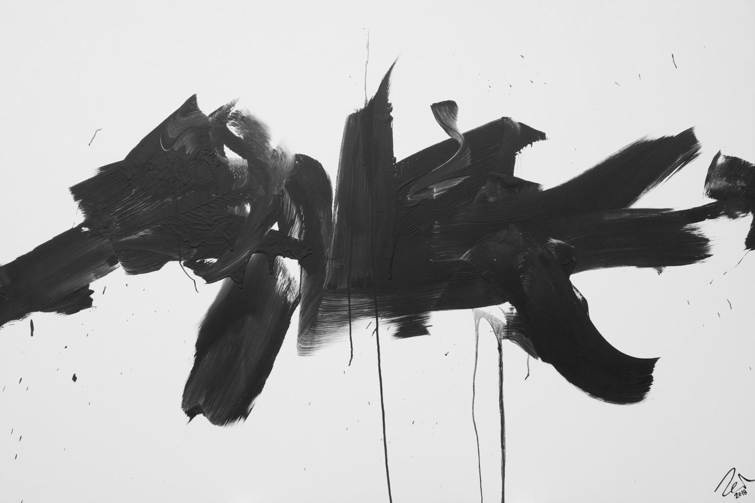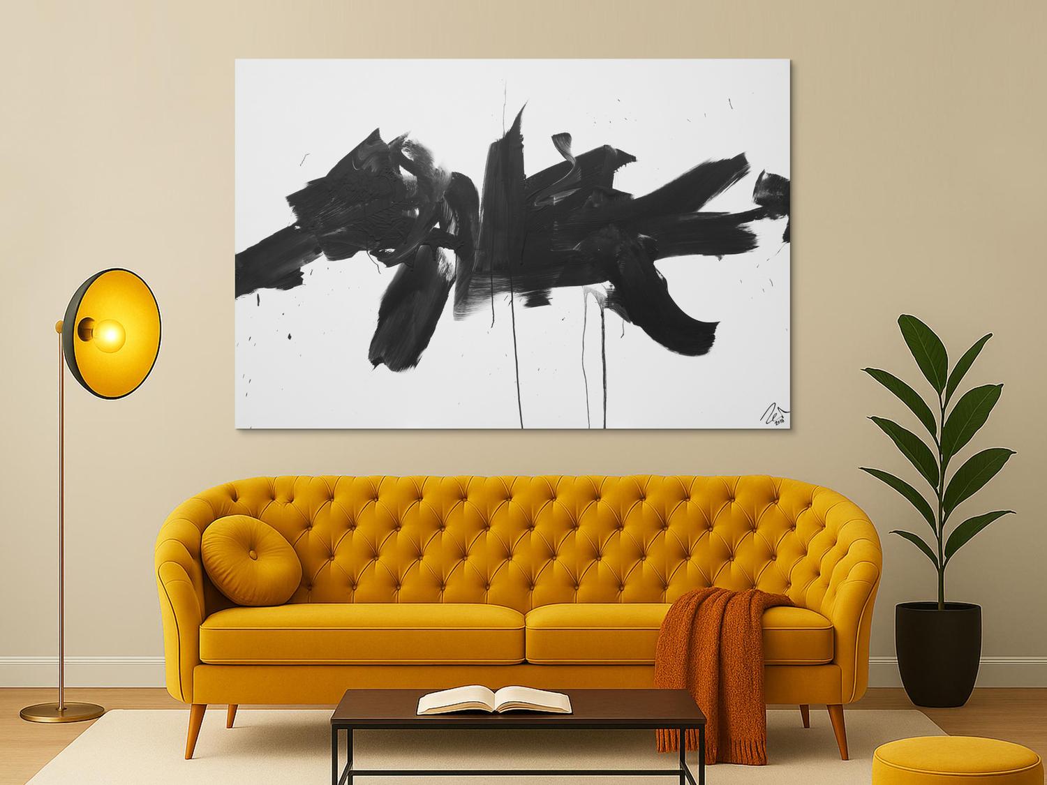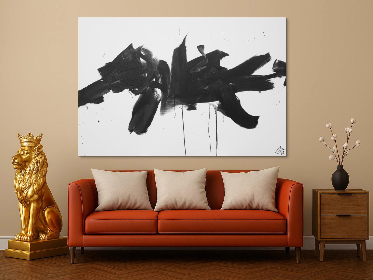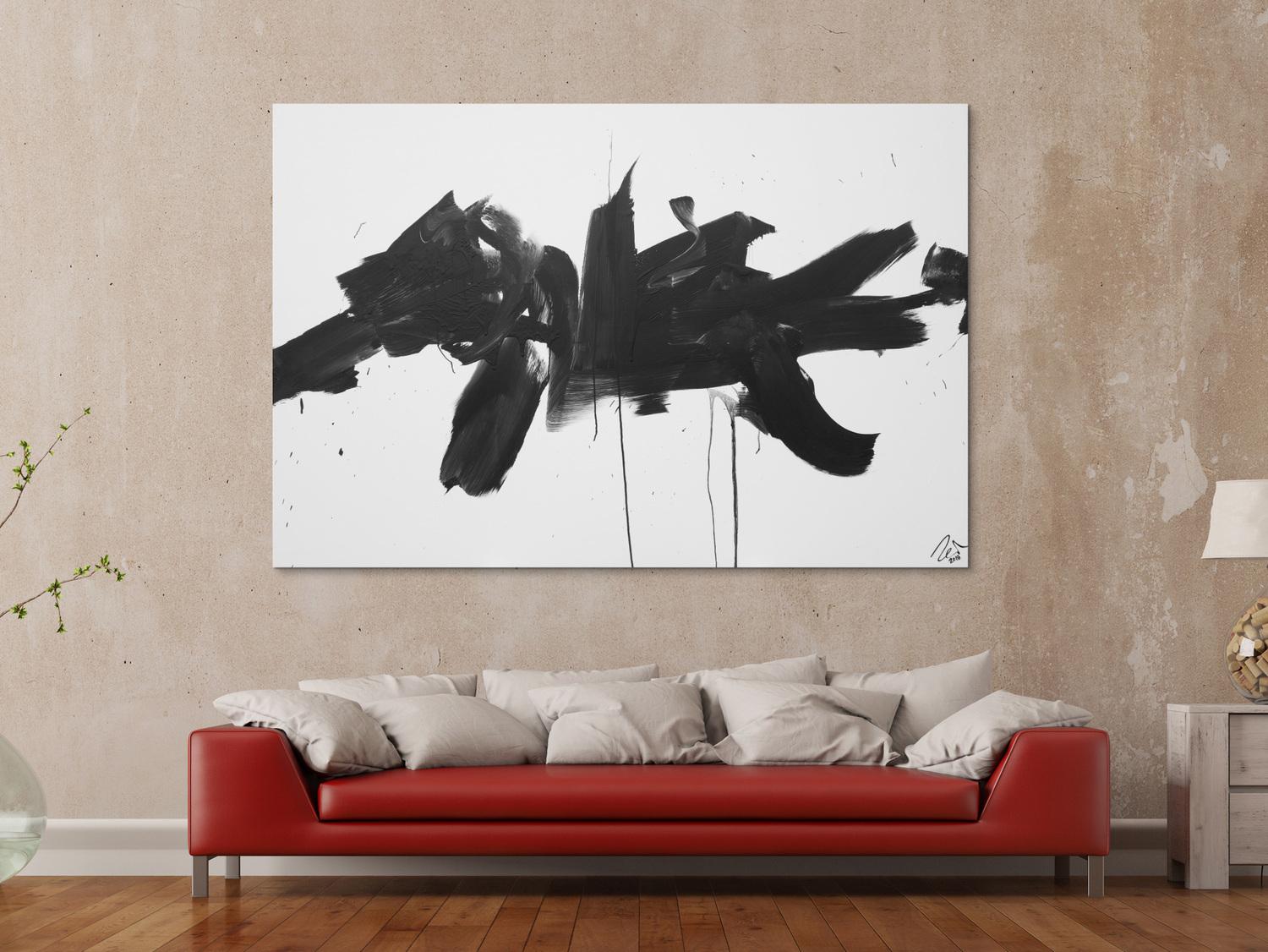 Abstraktes Gemälde auf Leinwand Abstraktes Acrylbild Action Painting schwarz weiß auf Leinwand modern schlicht in 130x190cm von Alex Zerr