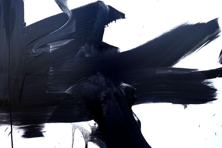 Abstraktes Acrylbild Action Painting schwarz weiß auf Leinwand modern schlicht