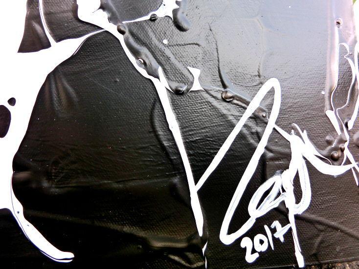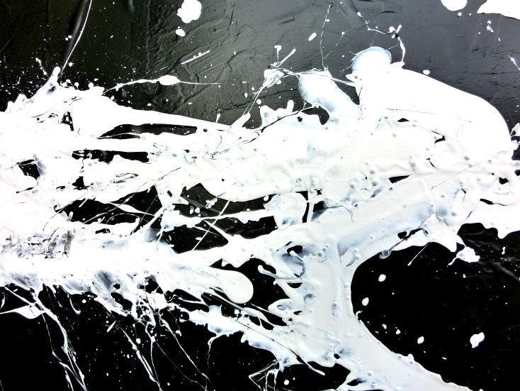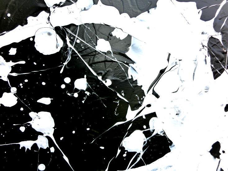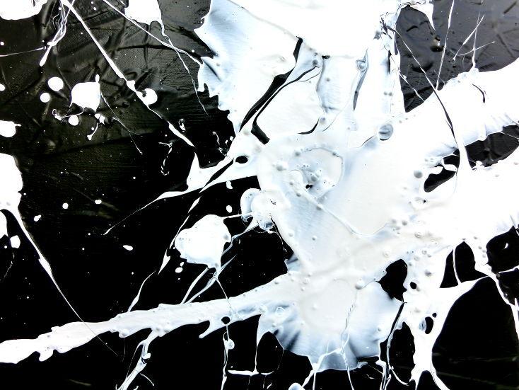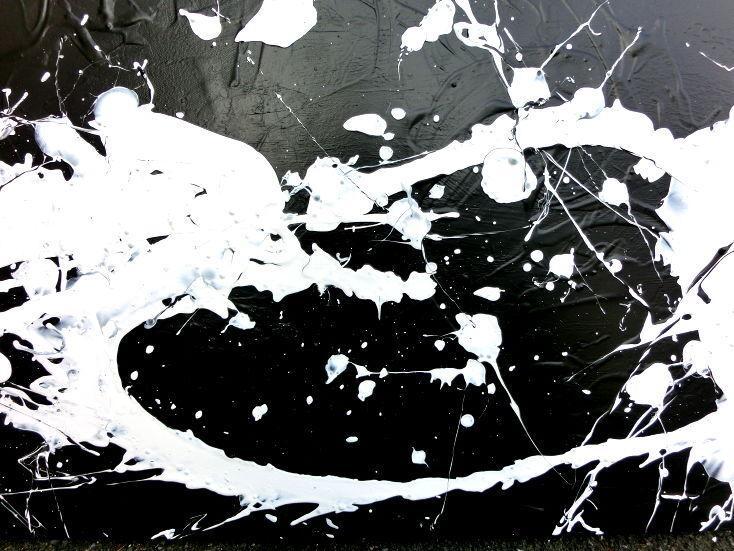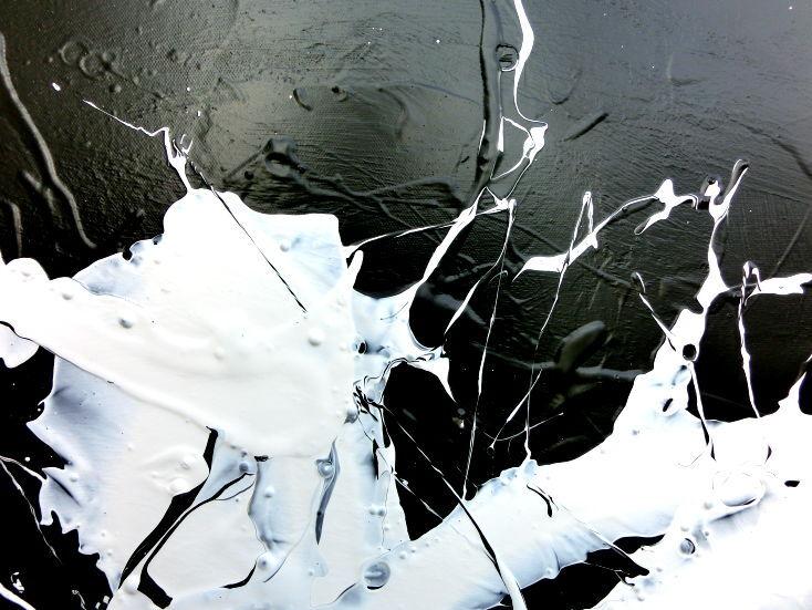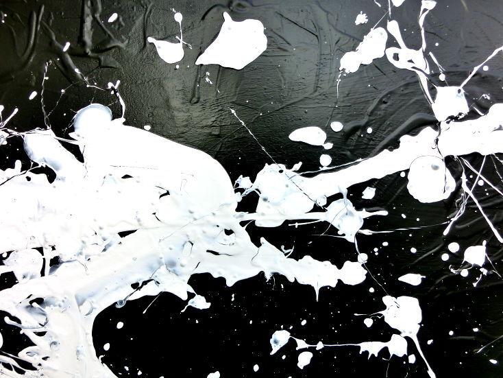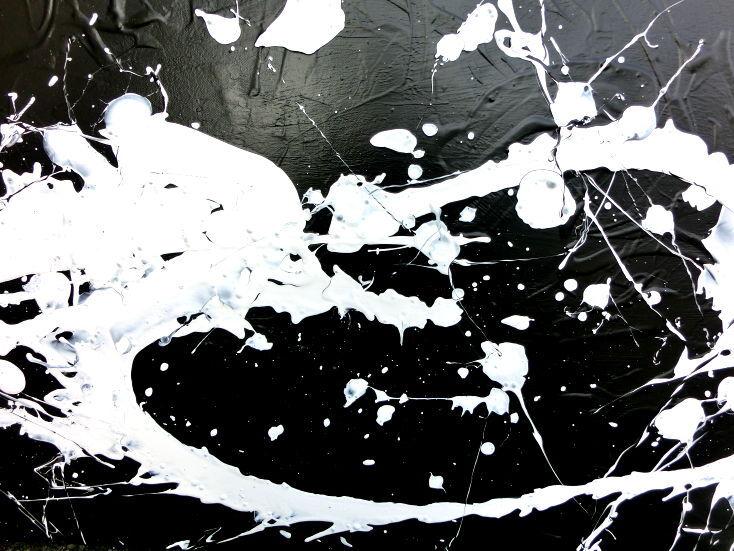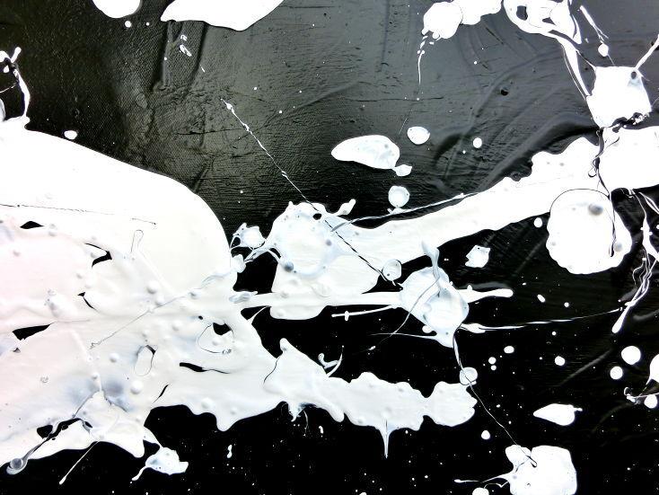 Abstraktes Acrylbild Action Painting schwarz weiß modernes Gemälde Fleck