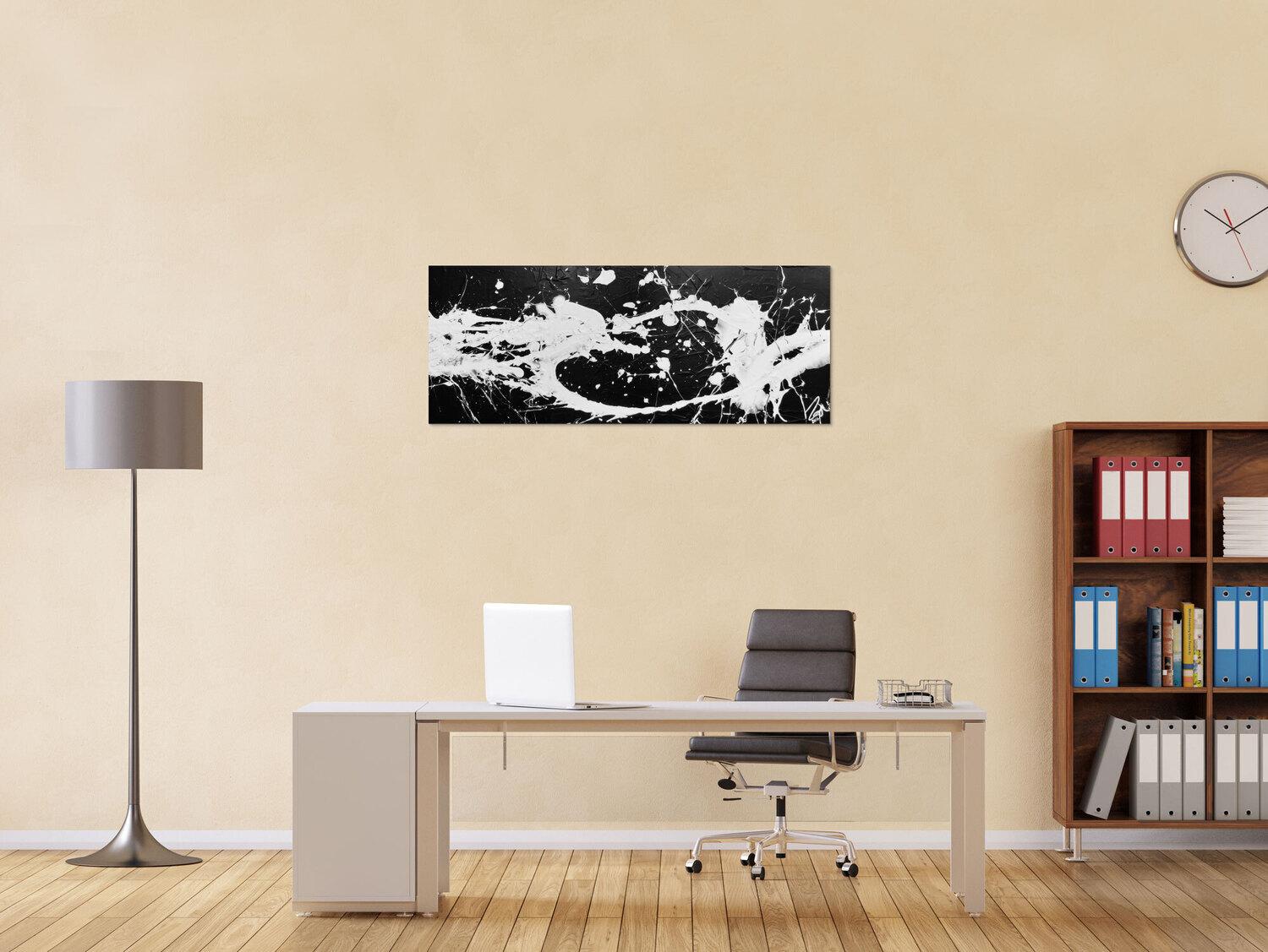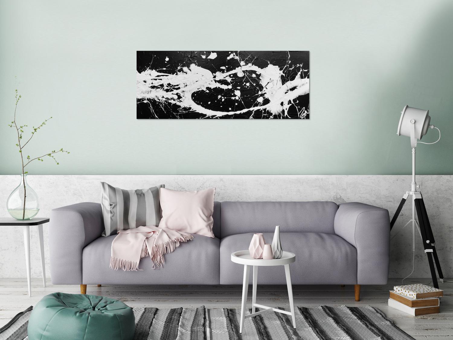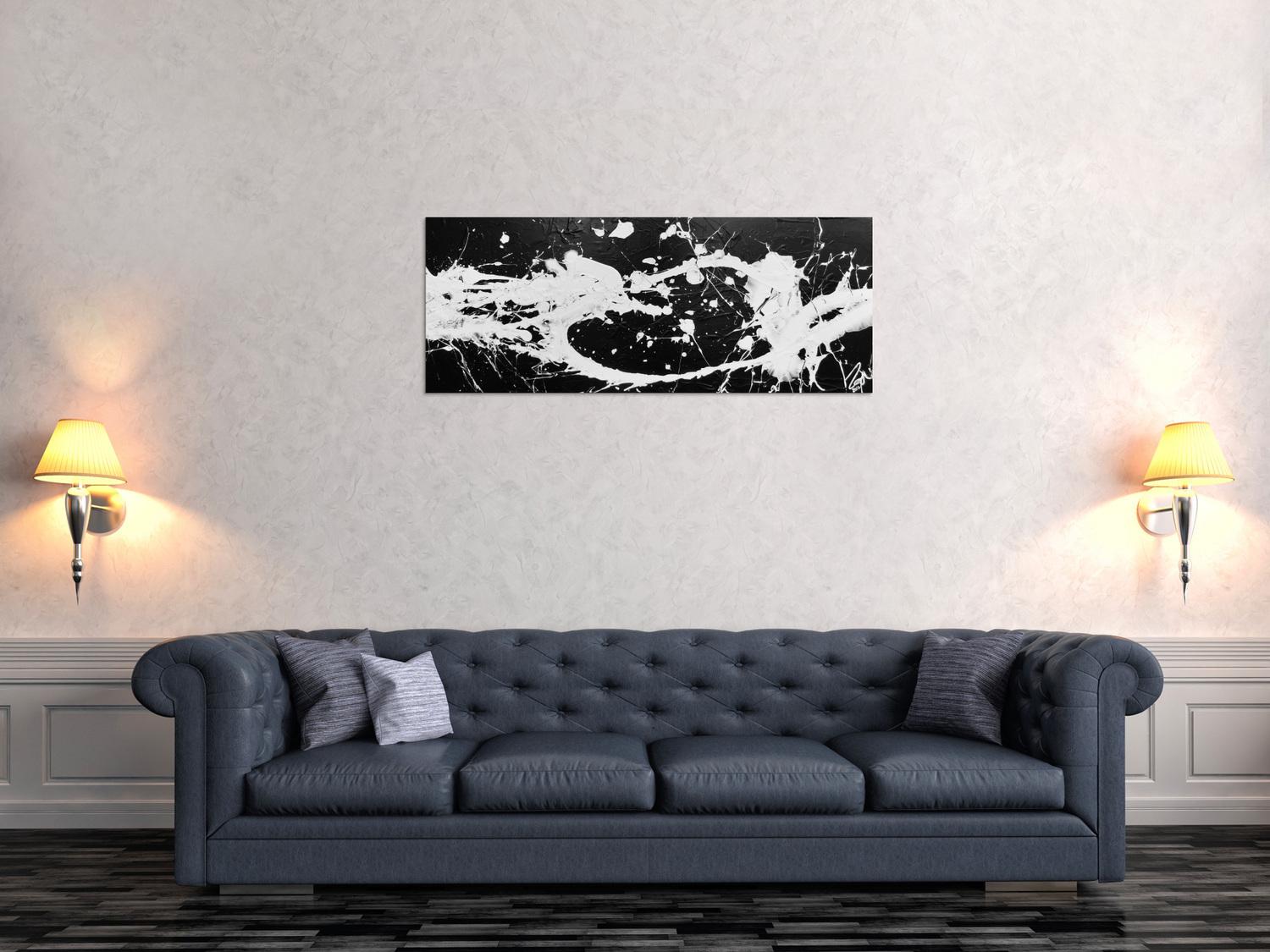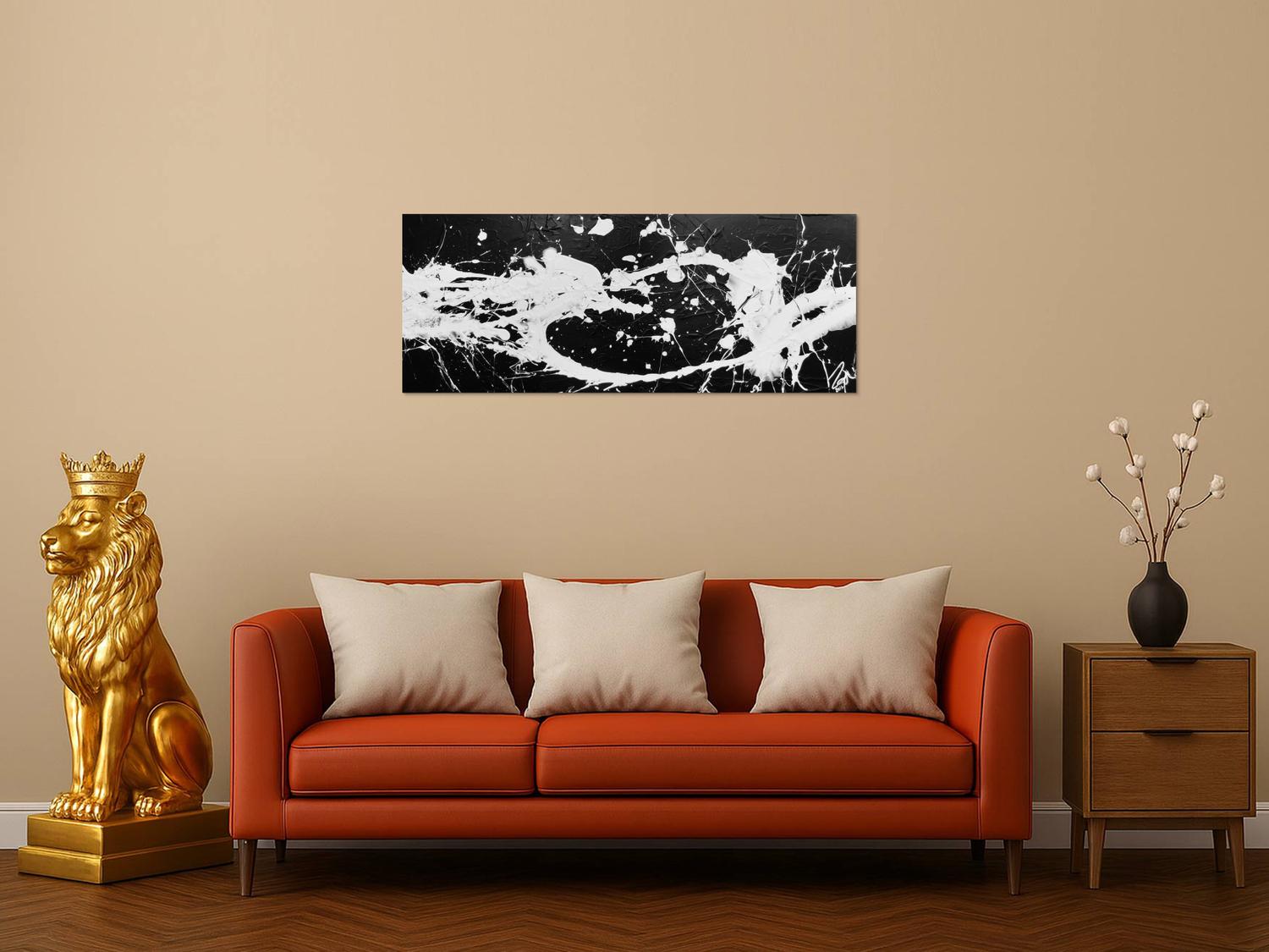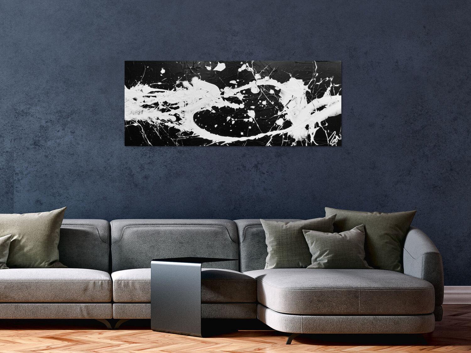 Abstraktes Gemälde auf Leinwand Abstraktes Acrylbild Action Painting schwarz weiß modernes Gemälde Fleck in 50x120cm von Alex Zerr