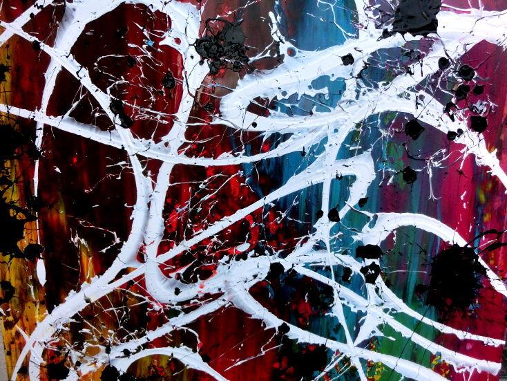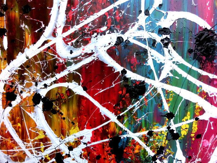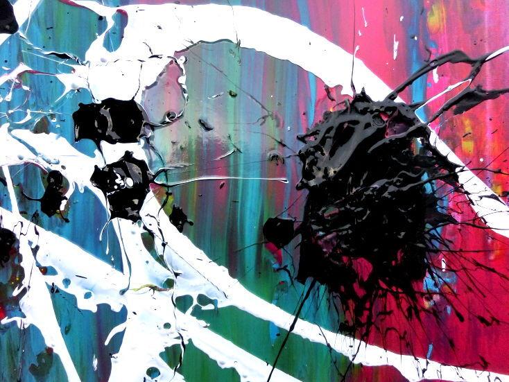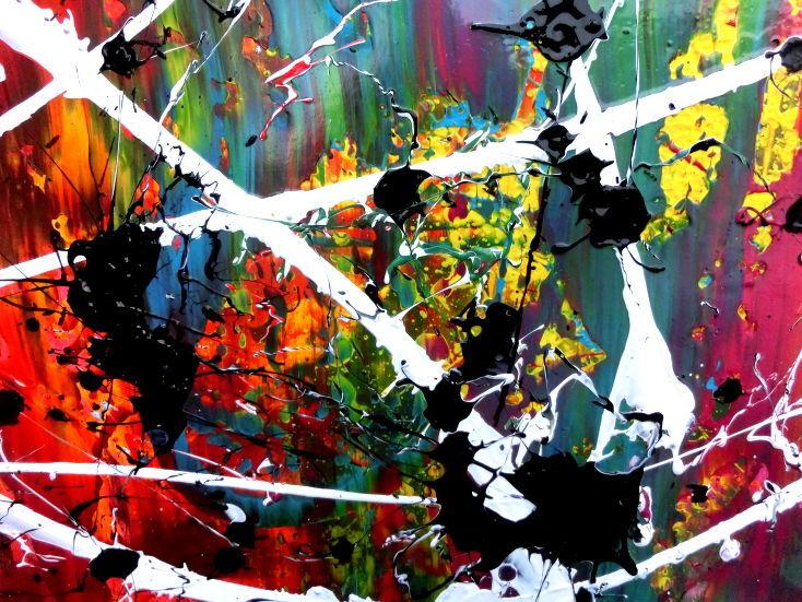 Abstraktes Acrylbild Action Painting sehr bunt viele Farben Splash Art