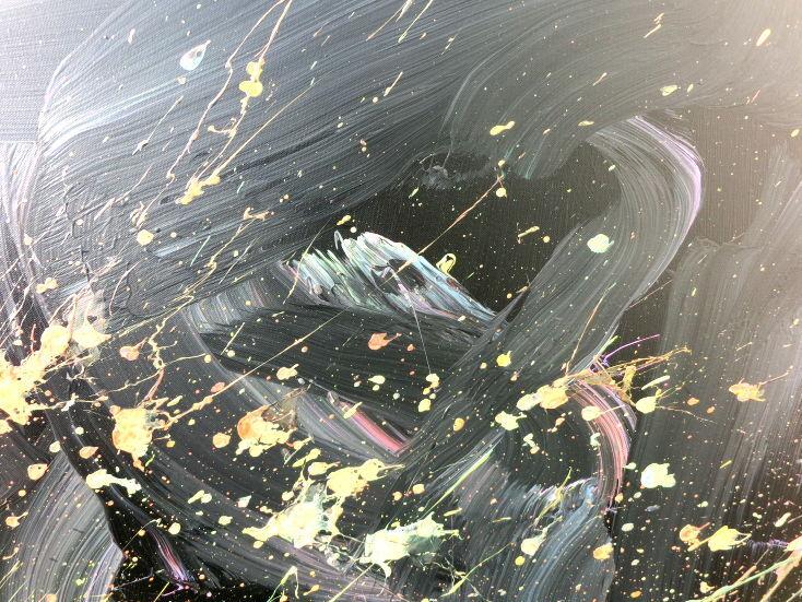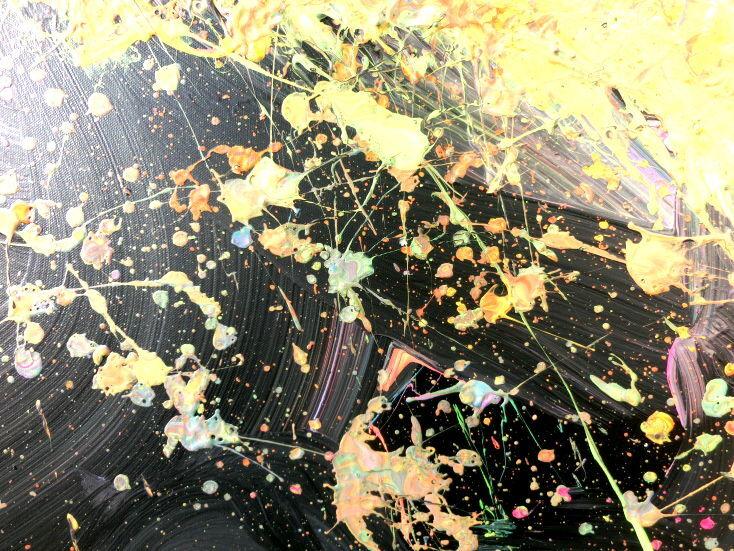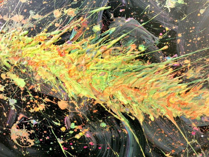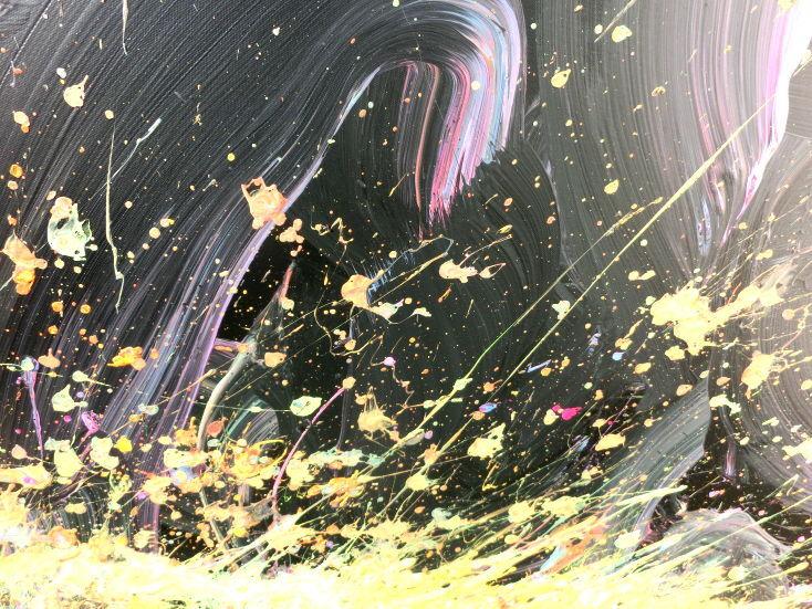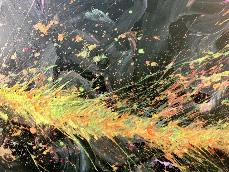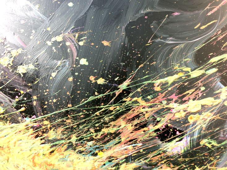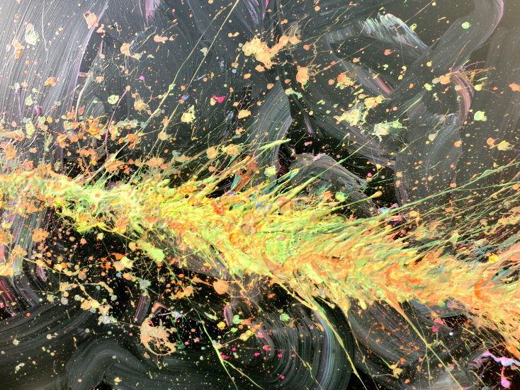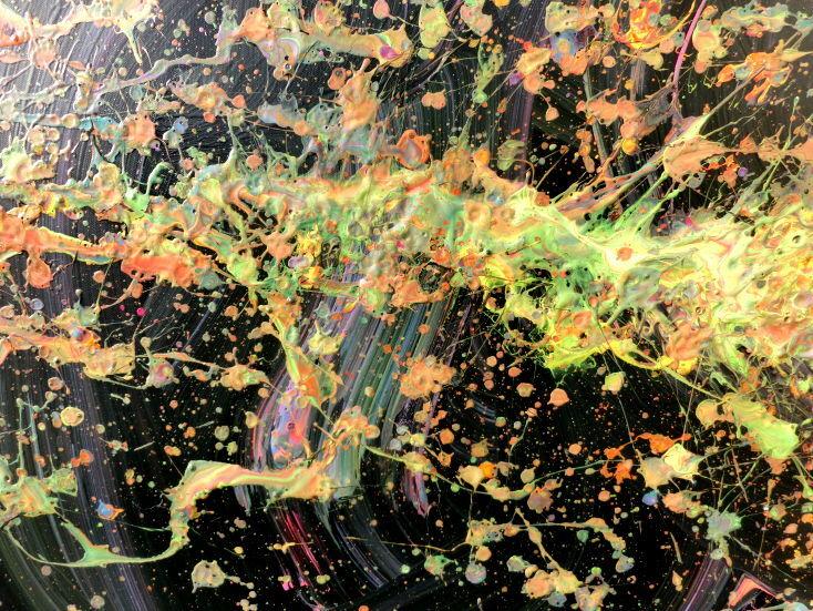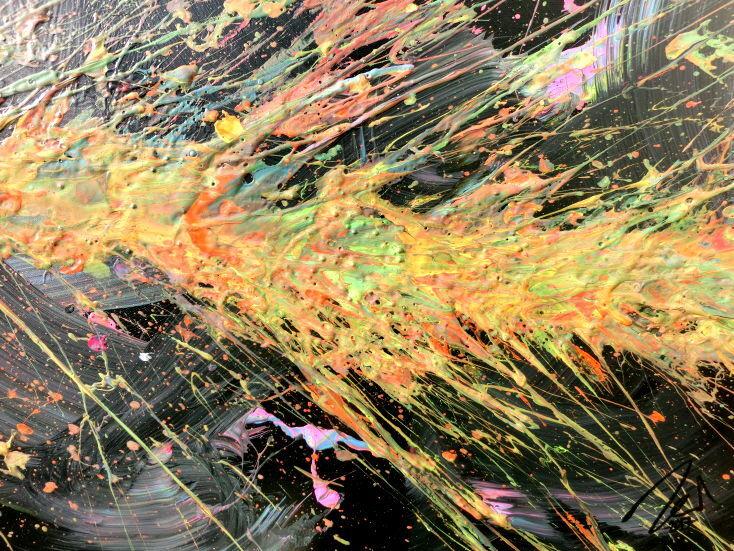 Abstraktes Acrylbild Action Painting sehr modern auf dunklem Hintergrund Splash Art