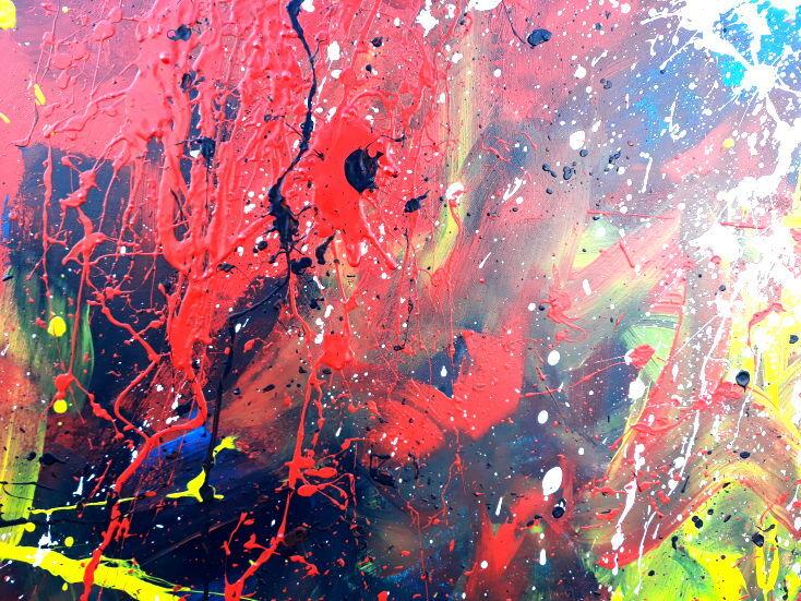 Abstraktes Acrylbild Action Painting sehr modern bunt viele Farben rot schwarz geld blau weiß