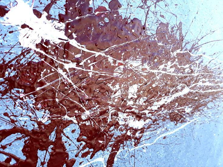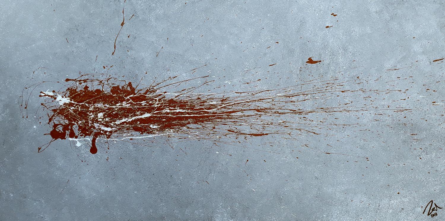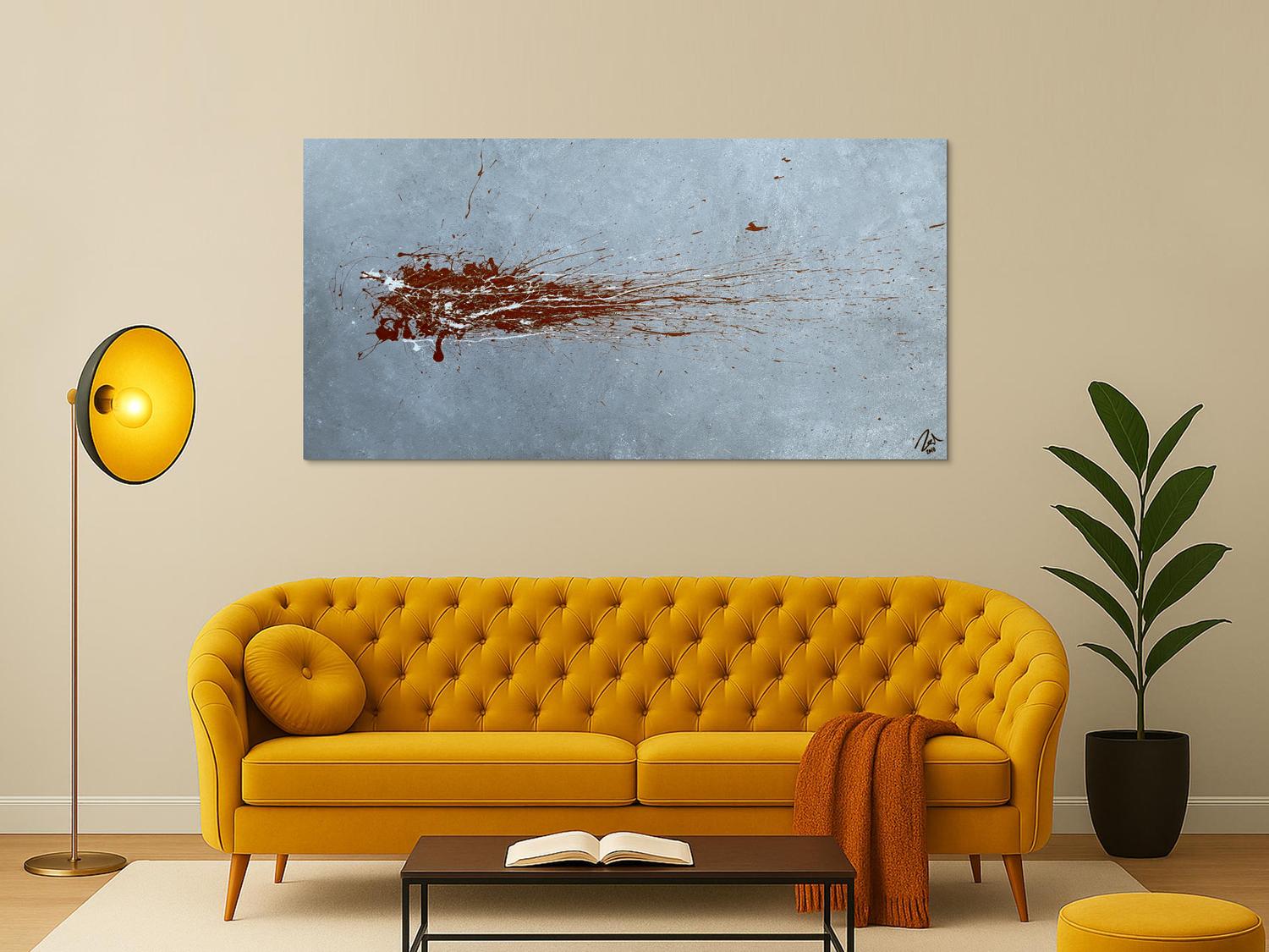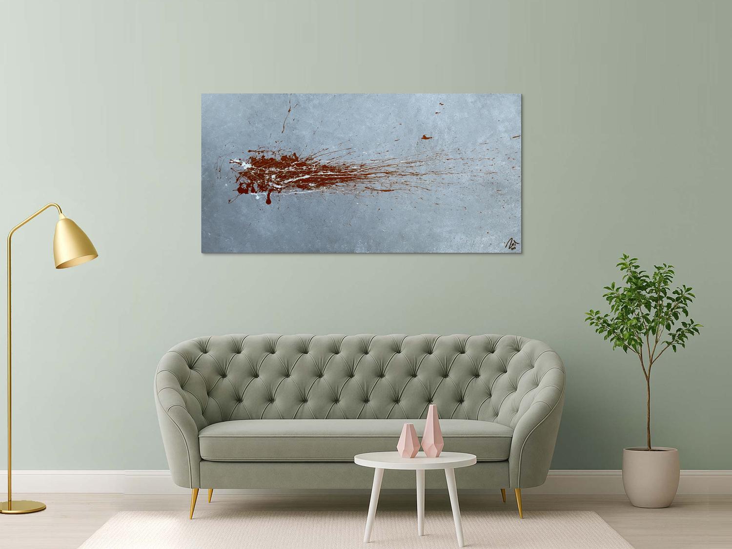 Abstraktes Acrylbild Action Painting sehr modern in grau bordeaux rot Slpash Art