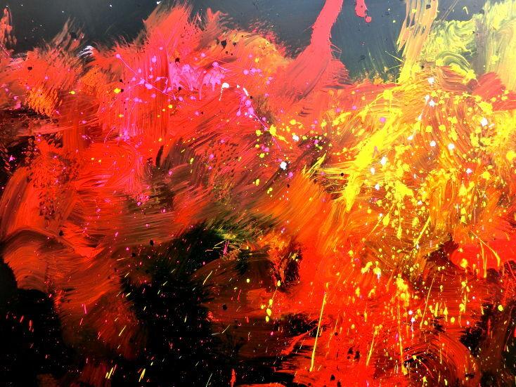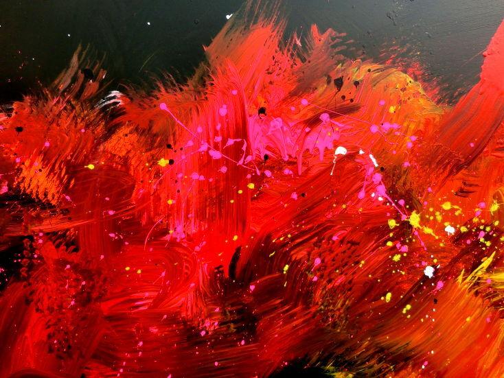 Abstraktes Acrylbild Actionpainting modern in schwarz rot gelb weiß pink