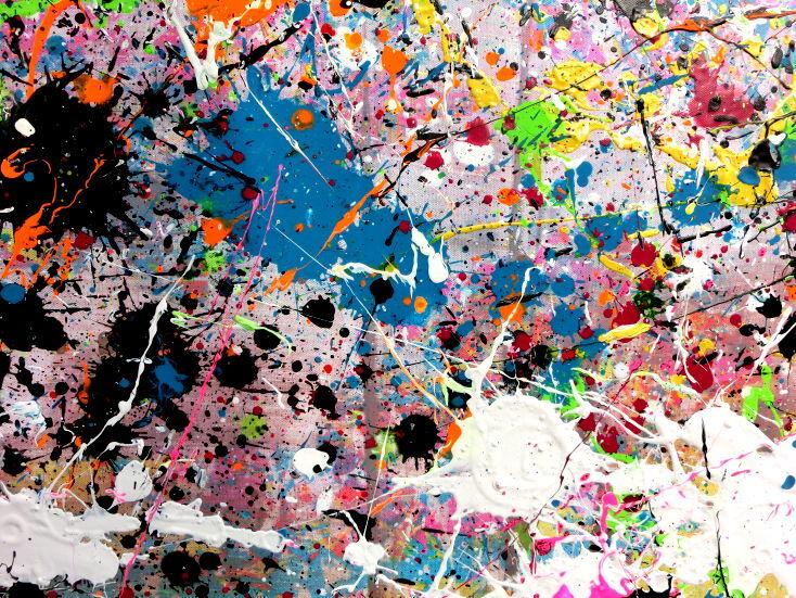 Abstraktes Acrylbild Actionpainting sehr bunt moderne helle Farben