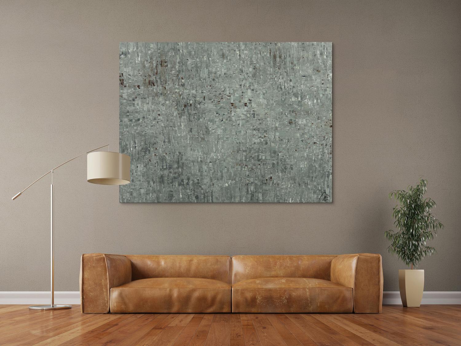 Abstraktes Gemälde auf Leinwand Abstraktes Acrylbild auf Leinwand handgemalt grau braun Spachteltechnik in 120x160cm von Alex Zerr