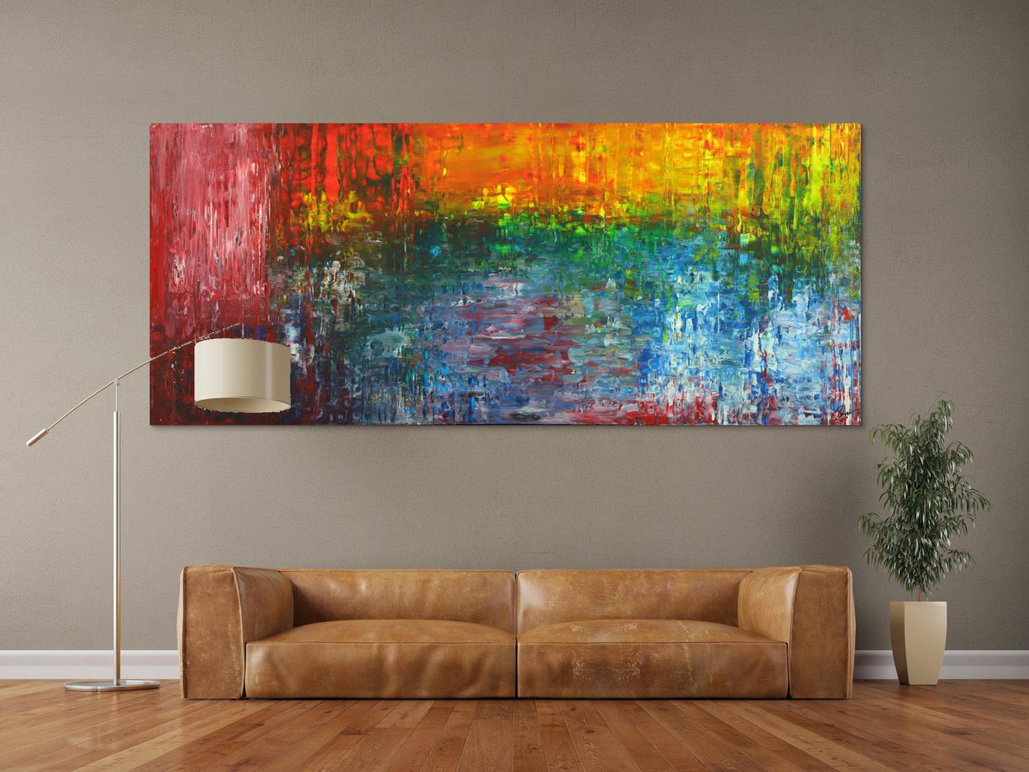 Abstraktes Gemälde auf Leinwand Abstraktes Acrylbild auf Leinwand handgemalt Spachteltechnik bunte Farben in 100x235cm von Alex Zerr