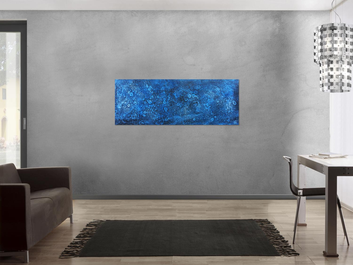 Abstraktes Gemälde auf Leinwand Abstraktes Acrylbild blau in 60x150cm von Alex Zerr