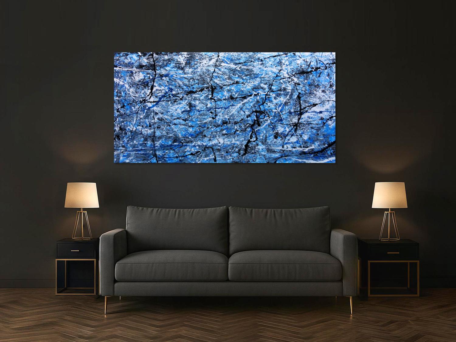 Abstraktes Gemälde auf Leinwand Abstraktes Acrylbild blau modern in 100x200cm von Alex Zerr