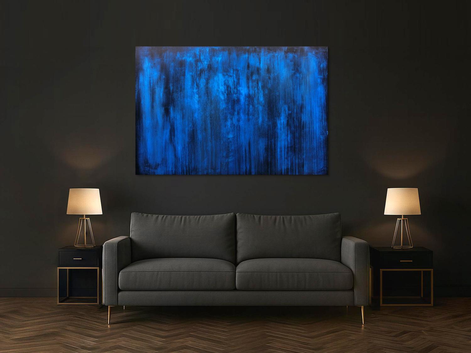 Abstraktes Gemälde auf Leinwand Abstraktes Acrylbild blau schlicht & modern in 100x170cm von Alex Zerr