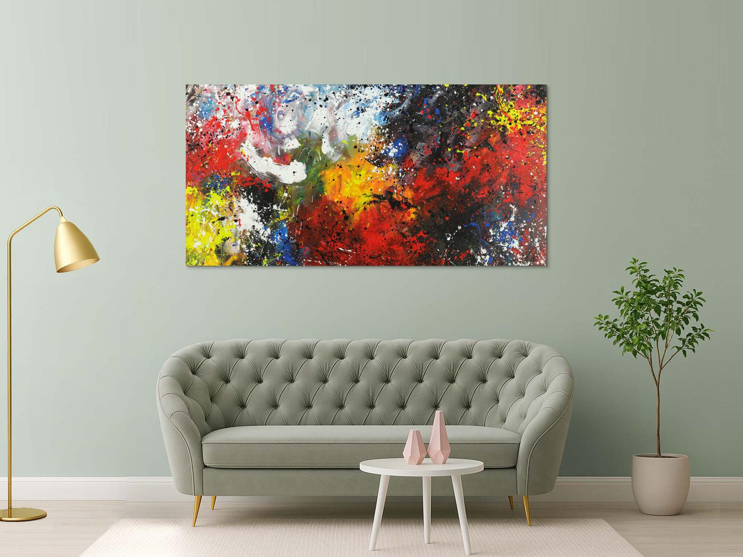 Abstraktes Gemälde auf Leinwand Abstraktes Acrylbild bunt Action Painting Modern Art handgemalt in 100x200cm von Alex Zerr
