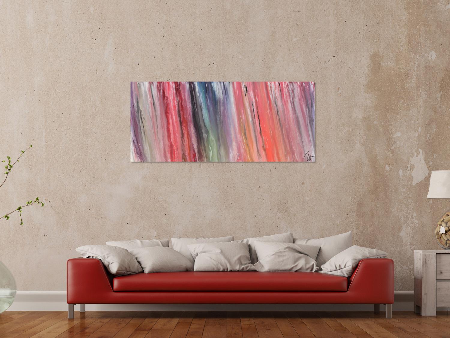 Abstraktes Gemälde auf Leinwand Abstraktes Acrylbild bunt Fließtechnik sehr modernes Gemälde zeitgenössisch in 60x140cm von Alex Zerr