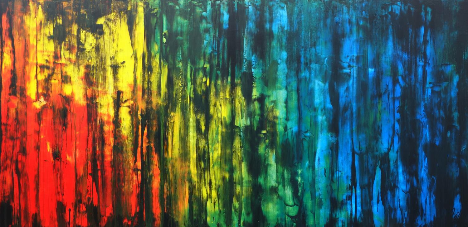Abstraktes Gemälde auf Leinwand Abstraktes Acrylbild bunt mit schwarz modern zeitgenössisch expressionistisch in 90x180cm von Alex Zerr