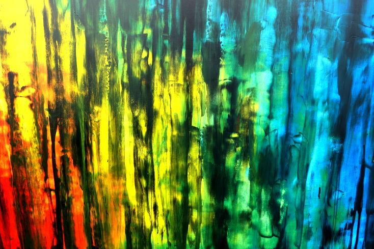 Abstraktes Acrylbild bunt mit schwarz modern zeitgenössisch expressionistisch