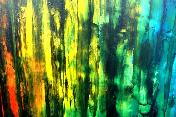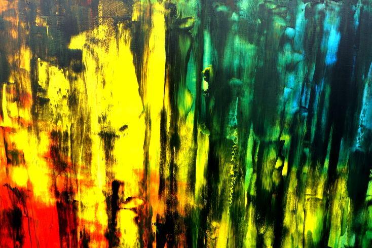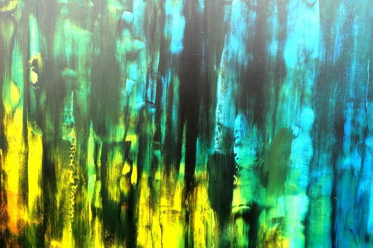 Dieses abstrakte Acrylbild ist ein handgemaltes Original vom Künstler Alex Zerr aus Bad Lisppringe und ist im Jahr 2018 in seinem Atelier entstanden. Das Bild hat eine Größe von 90x180cm und ist bereits auf einem hochwertigen und stabilem Rahmen aufgespannt. Dadurch kann das Bild nach der Lieferung direkt an die Wand gehängt werden und sofort in Ihrem Raum wirken. Alle Seiten des Gemäldes sind passend zum Motiv bemalt, so dass kein zusätzlicher Rahmen benötigt wird.