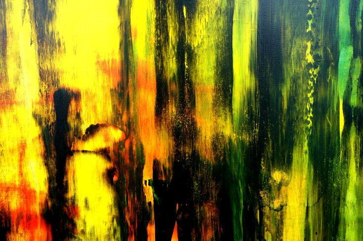 Dieses Werk ist wie alle meine Bilder: spontan entstanden, ganz intuitiv und ohne festes Konzept, und spiegelt oft meine momentane Stimmung wider wie auf der Leinwand festgehalten wurde.