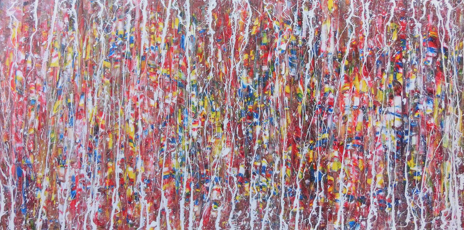 Abstraktes Gemälde auf Leinwand Abstraktes Acrylbild bunt mit weißen Streifen in 100x200cm von Alex Zerr