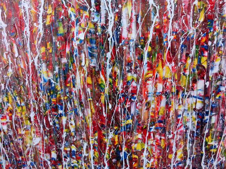 Hallo, ich bin Alex Zerr, der Künstler hinter diesem Gemälde. In meinem Atelier in Bad Lippspringe erschaffe ich abstrakte Acrylbilder, überwiegend im Action-Painting-Stil. Meißtens mit Acrylfarben und auf sehr großen XXL-Leinwänden, die meinem kreativen Prozess besonders viel Freiheit erlauben und oft zu beeindruckenden Gemälden führen.