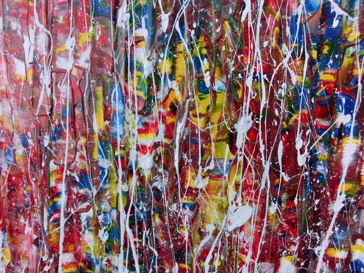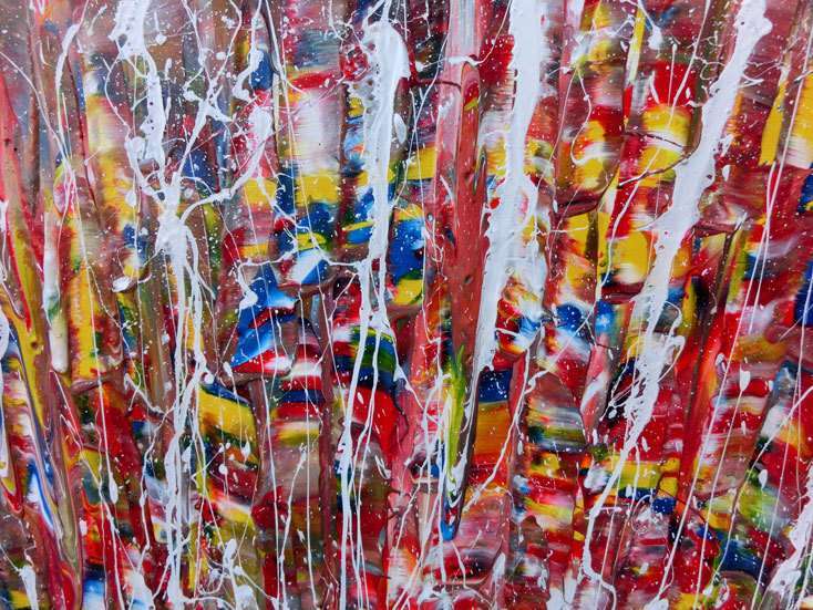 Abstraktes Acrylbild bunt mit weißen Streifen