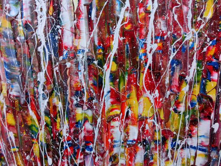 Dieses abstrakte Acrylbild ist ein handgemaltes Original vom Künstler Alex Zerr aus Bad Lisppringe und ist im Jahr 2015 in seinem Atelier entstanden. Das Bild hat eine Größe von 100x200cm und ist bereits auf einem hochwertigen und stabilem Rahmen aufgespannt. Dadurch kann das Bild nach der Lieferung direkt an die Wand gehängt werden und sofort in Ihrem Raum wirken. Alle Seiten des Gemäldes sind passend zum Motiv bemalt, so dass kein zusätzlicher Rahmen benötigt wird.