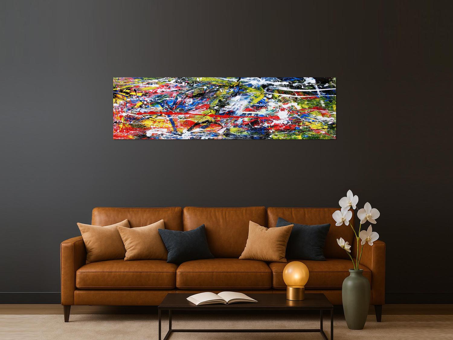 Abstraktes Gemälde auf Leinwand Abstraktes Acrylbild bunt modern in 55x200cm von Alex Zerr