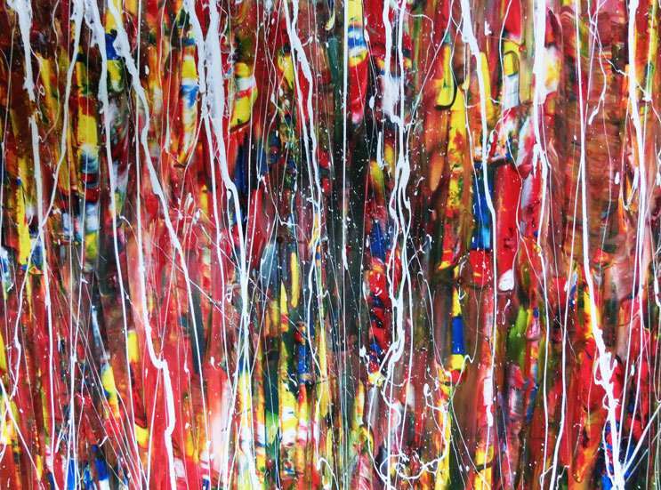 Hallo, ich bin Alex Zerr, der Künstler hinter diesem Gemälde. In meinem Atelier in Bad Lippspringe erschaffe ich abstrakte Acrylbilder, überwiegend im Action-Painting-Stil. Meißtens mit Acrylfarben und auf sehr großen XXL-Leinwänden, die meinem kreativen Prozess besonders viel Freiheit erlauben und oft zu beeindruckenden Gemälden führen.