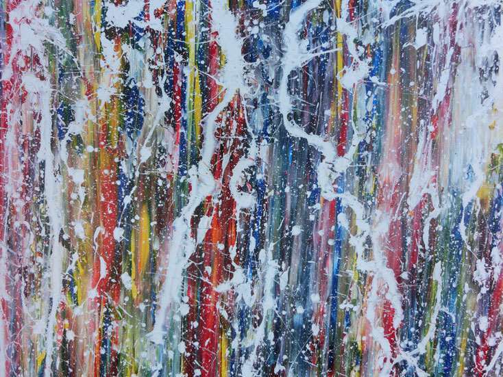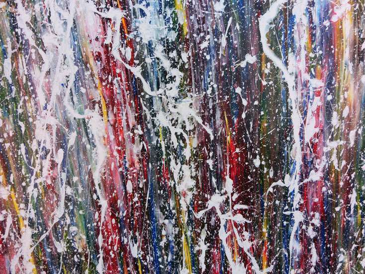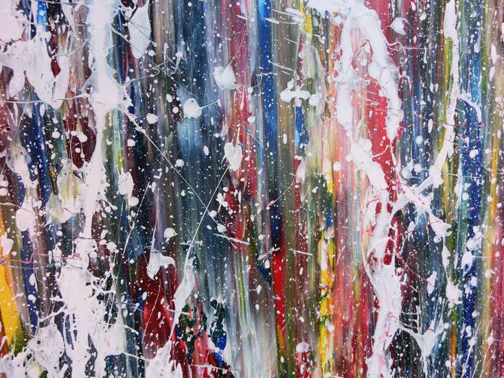 Dieses abstrakte Acrylbild ist ein handgemaltes Original vom Künstler Alex Zerr aus Bad Lisppringe und ist im Jahr 2015 in seinem Atelier entstanden. Das Bild hat eine Größe von 80x200cm und ist bereits auf einem hochwertigen und stabilem Rahmen aufgespannt. Dadurch kann das Bild nach der Lieferung direkt an die Wand gehängt werden und sofort in Ihrem Raum wirken. Alle Seiten des Gemäldes sind passend zum Motiv bemalt, so dass kein zusätzlicher Rahmen benötigt wird.