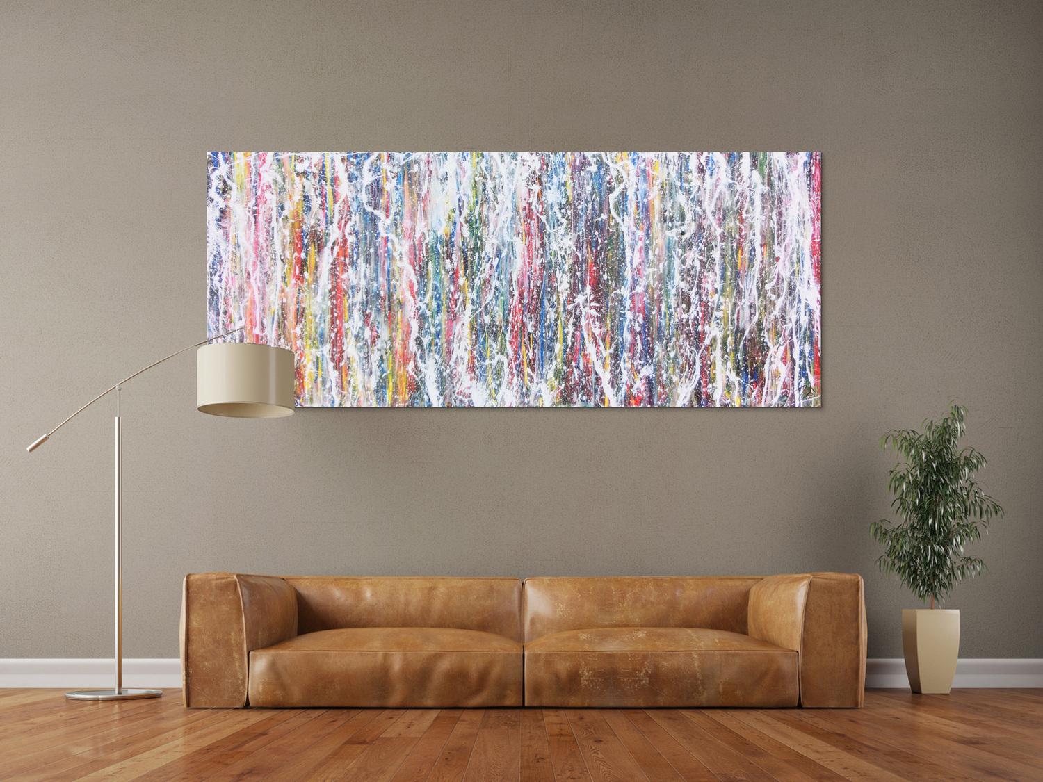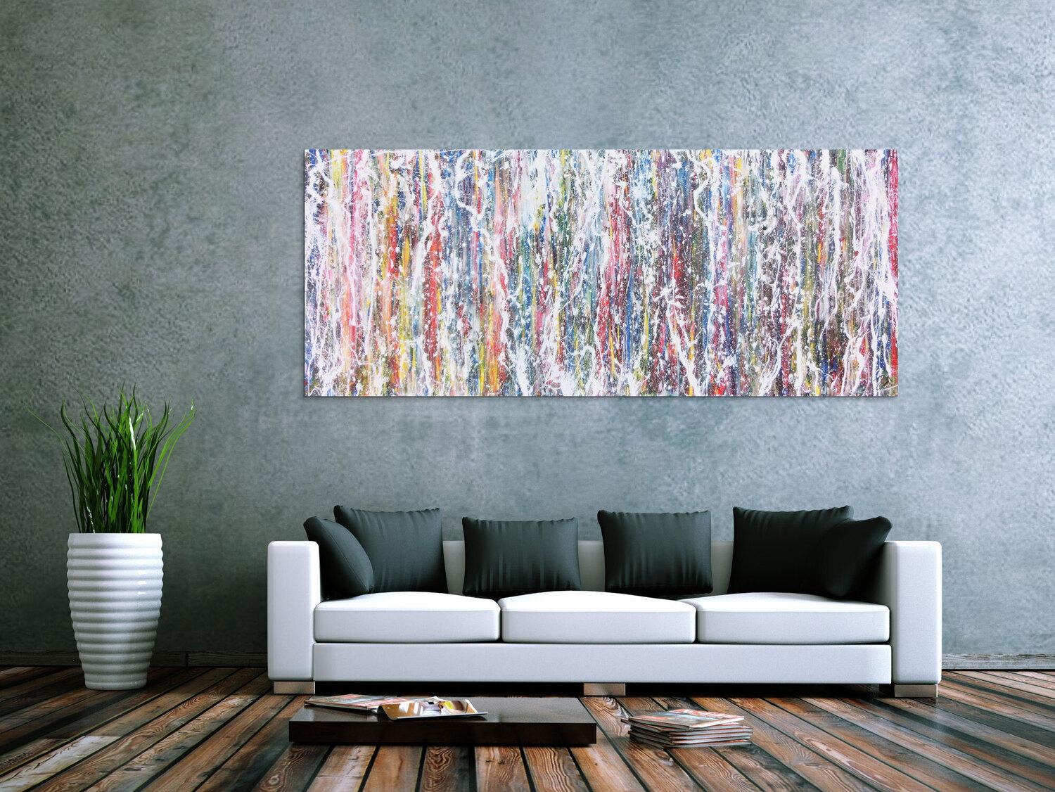 Abstraktes Gemälde auf Leinwand Abstraktes Acrylbild bunt modern farbenfroh in 80x200cm von Alex Zerr